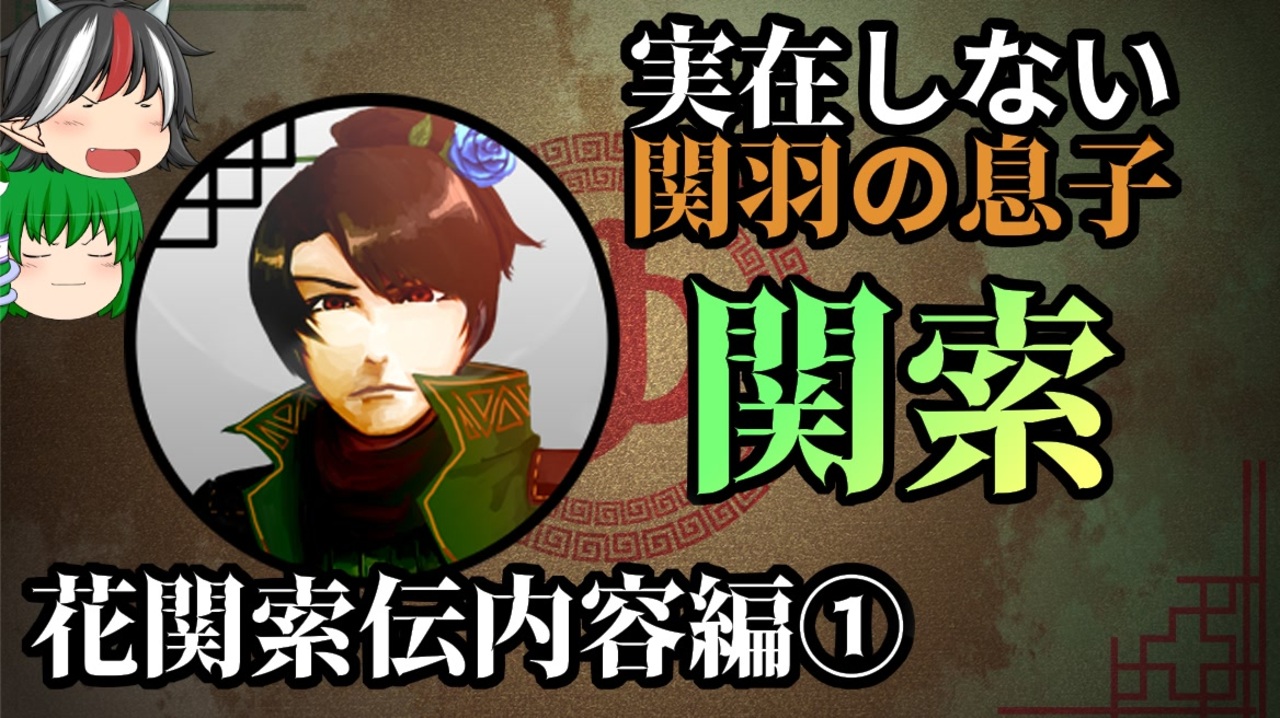 この動画は東方projectの二次創作です。AquesTalkライセンス購入済み。<br><br> ◇反三国志二次創作同人誌「叔漢二國史」<br> 冊子版 <a href="https://onl.sc/tKwXmmJ" target="_blank" rel="noopener nofollow">https://onl.sc/tKwXmmJ</a><br> 電子書籍版 <a href="https://onl.sc/HAJFhCp" target="_blank" rel="noopener nofollow">https://onl.sc/HAJFhCp</a><br><br>第二部 <a href="https://www.nicovideo.jp/watch/sm40527890" class="watch">sm40527890</a><br>第三部 <a href="https://www.nicovideo.jp/watch/sm40585200" class="watch">sm40585200</a><br>第四部 <a href="https://www.nicovideo.jp/watch/sm40698394" class="watch">sm40698394</a><br>第五部 <a href="https://www.nicovideo.jp/watch/sm40899657" class="watch">sm40899657</a><br><br>三国志のメジャーではないけれど面白い人物や評価されるべき人物を紹介していきます。<br>今回は三国志珍人物伝五十回特別記念号として、関索について解説いたします。<br>関索といえば実在しない関羽の第三子として、三国志に慣れ親しんだ人であれば知らない人はいないほどの有名人ですが、関羽という偉大な親を持つ設定で創作された割に、その活躍は小さく、いつのまにか物語から退場してしまいます。<br>この関索とはどのような人物なのか、なぜこのような人物が誕生したのか。過去最大の長編にてお話ししていきます。<br>第一部では「花関索伝内容編①」として、関索が主人公を務める物語「花関索伝」の前半を解説いたします。<br><br>▷第四十九回「徐璆」<a href="https://www.nicovideo.jp/watch/sm40369519" class="watch">sm40369519</a><br>▷第回「」<br><br>◆◆◆◆◆◆◆◆◆◆◆◆◆◆◆◆◆◆◆<br>参考文献 <a href="https://onl.sc/xCgE7Di" target="_blank" rel="noopener nofollow">https://onl.sc/xCgE7Di</a><br><br>この動画のイラストまとめ<br>Pixiv <a href="https://onl.sc/k3a4sx4" target="_blank" rel="noopener nofollow">https://onl.sc/k3a4sx4</a> <a href="https://onl.sc/A1Vp695" target="_blank" rel="noopener nofollow">https://onl.sc/A1Vp695</a><br>ニコニコ静画 <a href="https://seiga.nicovideo.jp/seiga/im11016972" target="_blank" rel="noopener">im11016972</a> <a href="https://seiga.nicovideo.jp/seiga/im11016973" target="_blank" rel="noopener">im11016973</a> <a href="https://seiga.nicovideo.jp/seiga/im11016974" target="_blank" rel="noopener">im11016974</a> <a href="https://seiga.nicovideo.jp/seiga/im11016976" target="_blank" rel="noopener">im11016976</a><br>BOOTH <a href="https://onl.sc/wqnHn7K" target="_blank" rel="noopener nofollow">https://onl.sc/wqnHn7K</a><br><br>YouTubeにもアップロードしています。<br><a href="https://youtu.be/wwEgBY5Mj7I" target="_blank" rel="noopener nofollow">https://youtu.be/wwEgBY5Mj7I</a><br>◆◆◆◆◆◆◆◆◆◆◆◆◆◆◆◆◆◆◆<br><br>音楽効果音提供<br>チンドン演歌/稿屋 隆 様<br>奇襲/稿屋 隆 様<br>月下盛宴/龍的交響楽 様<br>スターウォーズ神社/ホモサピエンス 様<br>オープニング/甘茶の音楽工房 様<br>イベント27/魔王魂 様<br>華恋~KALEN~/畑中ゆう 様<br>Taiko Warrior/MFP【Marron Fields Production】様<br>Aggression/shimtone 様<br>鋼炎/REV 様<br>効果音提供/効果音ラボ 様<br><br>画像提供<br>ぶろんてぃ 様<br><br>鮑三娘・胡金定に使用したボイスチェンジャー(公開終了)<br><a href="https://seiren-voice.dmv.nico/demo/" target="_blank" rel="noopener nofollow">https://seiren-voice.dmv.nico/demo/</a>