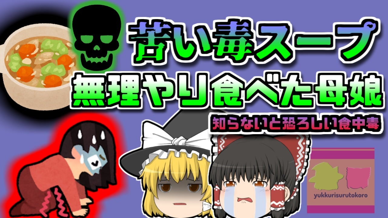 今回紹介するのは、以前からリクエストがありました「ユウガオ食中毒」です。<br>山形県村山市に暮らす女性「Aさん」はこの日の朝、二人の娘と共にいつも通りに朝食を食べていました。<br>この日の献立は洋風で、パンにサラダ、スープといったものでした。<br>美味しく朝食を摂っていた彼女たちですが、スープを口にした娘たちから「この野菜苦い…」と、訴えかけられたAさん。<br>Aさんも試しに食べてみると、確かにゴーヤのような強い苦みが。<br>しかし、「たまたま苦い個体に当たってしまったんだろう」と考えたAさんは、我慢してこのスープを飲み干し、娘たちも同じように、スープの容器を空けました。<br><br>ですが、その直後、母娘は激しい腹痛や嘔吐、唇の痺れなどの症状に襲われてしまいます・・・・<br><br><a href="#" class="seekTime" data-seekTime="00:00" onclick="seekNicoPlayer('#00:00'); return false;">#00:00</a> 冒頭挨拶<br><a href="#" class="seekTime" data-seekTime="00:27" onclick="seekNicoPlayer('#00:27'); return false;">#00:27</a> 視聴上の注意<br><a href="#" class="seekTime" data-seekTime="1:05" onclick="seekNicoPlayer('#1:05'); return false;">#1:05</a> 現地の説明<br><a href="#" class="seekTime" data-seekTime="2:28" onclick="seekNicoPlayer('#2:28'); return false;">#2:28</a> 今回の「Aさん」<br><a href="#" class="seekTime" data-seekTime="2:43" onclick="seekNicoPlayer('#2:43'); return false;">#2:43</a> 朝食<br><a href="#" class="seekTime" data-seekTime="3:02" onclick="seekNicoPlayer('#3:02'); return false;">#3:02</a> ユウガオスープ<br><a href="#" class="seekTime" data-seekTime="4:33" onclick="seekNicoPlayer('#4:33'); return false;">#4:33</a> 「苦み」<br><a href="#" class="seekTime" data-seekTime="5:18" onclick="seekNicoPlayer('#5:18'); return false;">#5:18</a> 娘に異変が<br><a href="#" class="seekTime" data-seekTime="6:07" onclick="seekNicoPlayer('#6:07'); return false;">#6:07</a> 病院へ<br><a href="#" class="seekTime" data-seekTime="6:26" onclick="seekNicoPlayer('#6:26'); return false;">#6:26</a>『ククルビタシン』<br><a href="#" class="seekTime" data-seekTime="7:16" onclick="seekNicoPlayer('#7:16'); return false;">#7:16</a> 原因<br><a href="#" class="seekTime" data-seekTime="9:04" onclick="seekNicoPlayer('#9:04'); return false;">#9:04</a> その後<br><a href="#" class="seekTime" data-seekTime="9:44" onclick="seekNicoPlayer('#9:44'); return false;">#9:44</a> 実は過去にも<br><a href="#" class="seekTime" data-seekTime="10:17" onclick="seekNicoPlayer('#10:17'); return false;">#10:17</a> 安心していいこと・注意すべきこと<br><br><br><br>引用:出展:参考資料<br>厚生労働省<br><a href="https://ishort.ink/NHCV" target="_blank" rel="noopener nofollow">https://ishort.ink/NHCV</a><br>旬の食材百科<br><a href="https://ishort.ink/EE1m" target="_blank" rel="noopener nofollow">https://ishort.ink/EE1m</a><br>山形県<br><a href="https://ishort.ink/g7Rg" target="_blank" rel="noopener nofollow">https://ishort.ink/g7Rg</a><br>村山市<br><a href="https://ishort.ink/jjBW" target="_blank" rel="noopener nofollow">https://ishort.ink/jjBW</a><br>政府広報オンライン<br><a href="https://ishort.ink/QkXp" target="_blank" rel="noopener nofollow">https://ishort.ink/QkXp</a><br>のんびりMOCHA<br><a href="https://ishort.ink/AwDZ" target="_blank" rel="noopener nofollow">https://ishort.ink/AwDZ</a><br><br><br />※この動画は過去の事件を知り、現在でも同じことが発生する危険性を再認識、関与しないように促すための動画であり、視聴者を扇動、動揺を誘うためのコンテンツではありません。<br><br>ご要望にお応えして、メンバーシップの開設を行いました。<br>下記URLからも登録可能ですので、ご興味がある方は是非ご参加ください。<br><a href="https://www.youtube.com/channel/UCcT5a1J7XJW7CLYI2RKl4pw/join" target="_blank" rel="noopener nofollow">https://www.youtube.com/channel/UCcT5a1J7XJW7CLYI2RKl4pw/join</a><br><br><br>Twitter<br>→<a href="https://twitter.com/yukkurisurutoko" target="_blank" rel="noopener nofollow">https://twitter.com/yukkurisurutoko</a><br><br>取り急ぎ、簡易的にですがマイリストを作りました。<br>【ゆっくり解説】事故・事件関係紹介リスト <br><a href="https://www.nicovideo.jp/mylist/71034319" target="_blank" rel="noopener nofollow">https://www.nicovideo.jp/mylist/71034319</a><br>【ゆっくり解説】放射線系事故<br><a href="https://www.nicovideo.jp/mylist/71034368" target="_blank" rel="noopener nofollow">https://www.nicovideo.jp/mylist/71034368</a><br>【ゆっくり解説】鉄道系事故・事件関連<br><a href="https://www.nicovideo.jp/mylist/71034379" target="_blank" rel="noopener nofollow">https://www.nicovideo.jp/mylist/71034379</a>