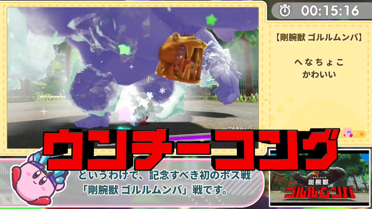 長いRTAを走るのは人生初なので初投稿です。投稿を予定より1ヶ月も遅らせたヴァカがここにいるらしい。多方面へのリスペクト要素がありますので注意。<br>前(体験版RTA): <a href="https://www.nicovideo.jp/watch/sm40222195" class="watch">sm40222195</a><br>次: <a href="https://www.nicovideo.jp/watch/sm40738240" class="watch">sm40738240</a><br><br>YouTube版: <a href="https://youtu.be/mDTdc-iL7SY" target="_blank" rel="noopener nofollow">https://youtu.be/mDTdc-iL7SY</a><br>無編集版: <a href="https://youtu.be/cXflloJKEmc" target="_blank" rel="noopener nofollow">https://youtu.be/cXflloJKEmc</a><br>ディスカビRTA: [ <a href="https://www.nicovideo.jp/mylist/73025349" target="_blank" rel="noopener">mylist/73025349</a>, <a href="https://www.nicovideo.jp/series/400965" target="_blank" rel="noopener">series/400965</a> ]<br>星のカービィ ディスカバリー: <a href="https://www.nicovideo.jp/mylist/74456095" target="_blank" rel="noopener">mylist/74456095</a><br>カービィまとめ: <a href="https://www.nicovideo.jp/mylist/73025340" target="_blank" rel="noopener">mylist/73025340</a><br />生存確認用のTwitter: <a href="https://twitter.com/bomonotone" target="_blank" rel="noopener nofollow">https://twitter.com/bomonotone</a>