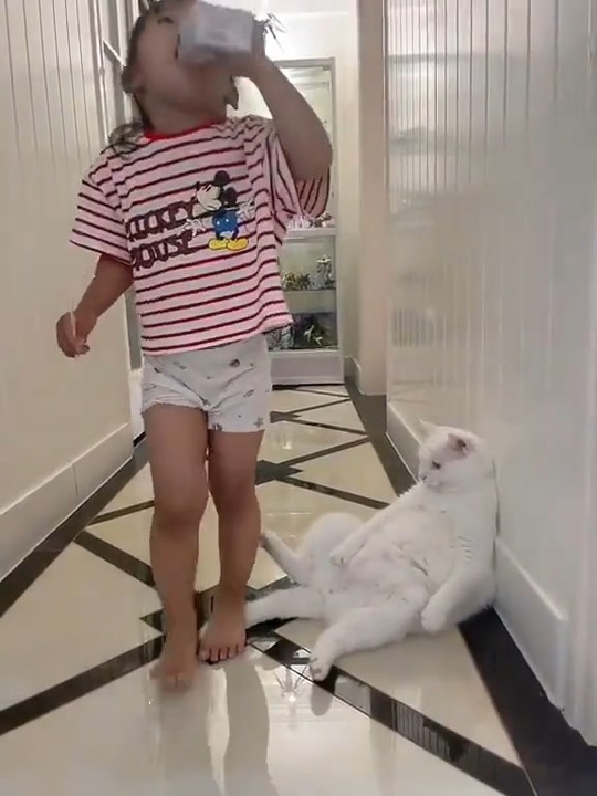 女VSおっさんみたいな猫