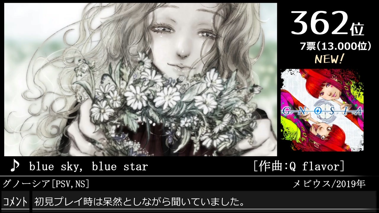 | な ひ 霊 な せ 子 ひ 断 わ<br>こ ん と 器 はぜ 明は 犬 と 絶 た<br>う か つ 交 こだ 滅し や つ さ し<br>し す の 流 びか しく あ の れ と<br>て ご 青 電 こお なせ の 青 た い<br>時 い い 燈 まふ がは こ い 霊 ふ<br>空 枚 照 の れね らし と 照 器 現<br>を 数 明 たに く い 明 交 象<br>超 じ な っ で 流 は<br>え ゃ ん し す 電<br>た な だ ょ 燈<br>っ い け に の<br>て ? ど<br>わ<br>け<br>|<br>序<br><br><span style="color: #cfe2f3;">扉絵をループさせるため&募集ばかりして何もしてないのも申し訳ないので<br>今回だけ自作の艦これ9周年絵です、お目汚し失礼</span><br><br><s>第15回、投票受付中!↓※5月1日~8月1日迄<br><a href="https://jbbs.shitaraba.net/bbs/read.cgi/music/25545/1651330742/" target="_blank" rel="noopener nofollow">https://jbbs.shitaraba.net/bbs/read.cgi/music/25545/1651330742/</a></s><br>---------------------------------<br><s>スクリーンショット大募集!<br>詳しくは下記投稿フォームのご案内やスクショ状況スプレッドシート等をご確認下さい<br>↓<br><a href="https://ws.formzu.net/dist/S9500351/" target="_blank" rel="noopener nofollow">https://ws.formzu.net/dist/S9500351/</a></s><br><br>投票結果はこちら<br>↓<br><a href="https://w.atwiki.jp/gamemusicbest100/pages/9526.html" target="_blank" rel="noopener nofollow">https://w.atwiki.jp/gamemusicbest100/pages/9526.html</a><br><br>ご質問等ある際はこちらのページへコメント下さいませ<br>↓<br><a href="https://arutoneriko2.hatenablog.com/" target="_blank" rel="noopener nofollow">https://arutoneriko2.hatenablog.com/</a><br>---------------------------------<br><a href="https://www.nicovideo.jp/watch/sm40524364" class="watch">sm40524364</a>←Part26|今回|Part28→<a href="https://www.nicovideo.jp/watch/sm40574235" class="watch">sm40574235</a><br> 3票ランク外new→<a href="https://www.nicovideo.jp/watch/sm40535893" class="watch">sm40535893</a><br> 1位1票①→<a href="https://www.nicovideo.jp/watch/sm40454247" class="watch">sm40454247</a> <a href="https://www.nicovideo.jp/mylist/50993049" target="_blank" rel="noopener">mylist/50993049</a>