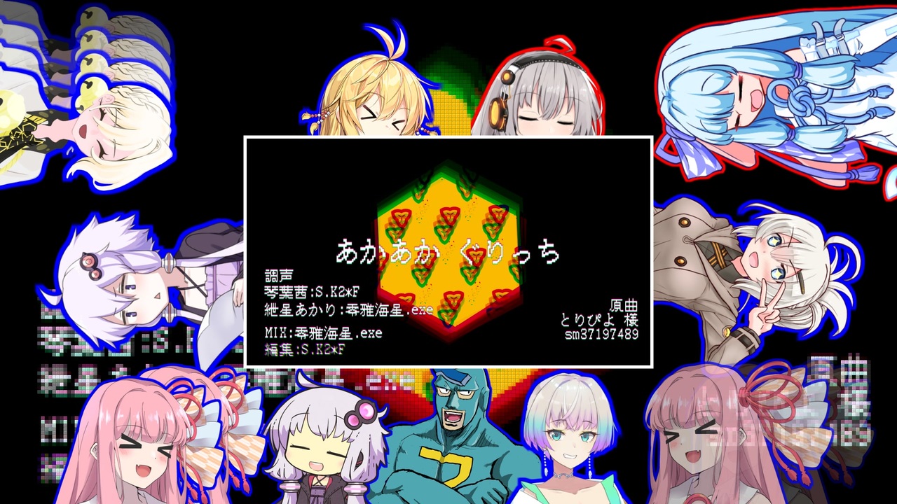 こっちは滅茶苦茶足し算を頑張りました。<br>これ音MA……ボイパロイドです(断言)<br>なお、あかねちゃんの声はすけっつニキによる新規収録になります!!愛されてんねぇ!!!!<br><br>※あとクレジットで『ピタ声』って書いてますけど、正しい表記は『ぴた声』です<br><br>中央の動画:<a href="https://www.nicovideo.jp/watch/sm38129128" class="watch">sm38129128</a><br>本家:<a href="https://www.nicovideo.jp/watch/sm37197489" class="watch">sm37197489</a><br><br><span style="color: #ff0000; font-size: 24px;">※許可のない他動画サイトへの転載を禁止します。</span><br><br>S.K2*FさんTwitter:<a href="https://twitter.com/KAIDEN_AKANE" target="_blank" rel="noopener nofollow">https://twitter.com/KAIDEN_AKANE</a><br><br>歌ボ・ボカロ関連→<a href="https://www.nicovideo.jp/mylist/65681656" target="_blank" rel="noopener">mylist/65681656</a><br>【前作】かるみあどーるず(ボイパロイド)→<a href="https://www.nicovideo.jp/watch/sm40511946" class="watch">sm40511946</a><br>【次作】QUEEN→<a href="https://www.nicovideo.jp/watch/sm40963951" class="watch">sm40963951</a><br>Twitter:<a href="https://twitter.com/zeromiyakaisei" target="_blank" rel="noopener nofollow">https://twitter.com/zeromiyakaisei</a>