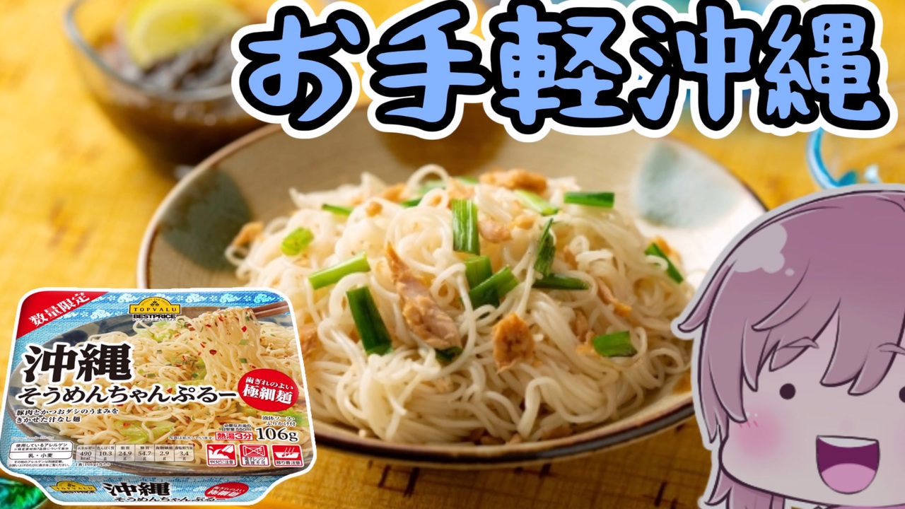 ※食べる時に注意してたのに容器に指かけて食べてしまいました、申し訳ございません!<br>ささら「沖縄県民95%はソーメンよりそーめんちゃんぷるー好き説」<br><br>youtube版。<br>再生数が伸び悩んでいるので、合わせて観ていただけるととっても嬉しいです。<br>→<a href="https://youtu.be/EsHboS2VDGE" target="_blank" rel="noopener nofollow">https://youtu.be/EsHboS2VDGE</a><br><br><a href="https://twitter.com/gyuusha3" target="_blank" rel="noopener nofollow">https://twitter.com/gyuusha3</a><br><br><br><strong>▼もぐもぐ飲食レポ(youtubeに、ほかの食レポも有ります)</strong><br>★4 セブン&アイ 極上炒飯 <a href="https://www.nicovideo.jp/watch/sm40455602" class="watch">sm40455602</a><br>★3 日清 大盛 豚×辛 背脂にんにく辛味噌まぜそば <a href="https://www.nicovideo.jp/watch/sm40470419" class="watch">sm40470419</a><br>★5 森永<s>乳業</s>製菓 板チョコアイス <a href="https://www.nicovideo.jp/watch/sm40504549" class="watch">sm40504549</a><br>★4or5 ロッテ 雪見だいふく すいーとぽてと <a href="https://www.nicovideo.jp/watch/sm40533853" class="watch">sm40533853</a><br>★3or4 ニチレイ たいめいけんドライカレー <a href="https://www.nicovideo.jp/watch/sm40539710" class="watch">sm40539710</a><br>★4 トップバリュ 沖縄そうめんちゃんぷるー <a href="https://www.nicovideo.jp/watch/sm40559581" class="watch">sm40559581</a><br><br><strong>▼満腹スヤスヤ部</strong><br>ささらの両手はWニンニク!なデカデカゴールデンオムライス <a href="https://www.nicovideo.jp/watch/sm40281620" class="watch">sm40281620</a><br>極厚BIGエッグサンドR〒A横浜→川崎 2:00:00? <a href="https://www.nicovideo.jp/watch/sm40308483" class="watch">sm40308483</a><br>ぴったんこ2000キロカロリーinはま寿司 <a href="https://www.nicovideo.jp/watch/sm40340740" class="watch">sm40340740</a><br>Wチーズヤンニョム鶏皮チキン大開花丼!!! <a href="https://www.nicovideo.jp/watch/sm4037319" class="watch">sm4037319</a><br>朝ラーR〒A極味屋47分41秒0.7 <a href="https://www.nicovideo.jp/watch/sm40447746" class="watch">sm40447746</a><br>ラードニンニクW豚ラ王二郎withフライドオニオン <a href="https://www.nicovideo.jp/watch/sm40480011" class="watch">sm40480011</a><br><br><strong>▼ささきり飯</strong><br>ホットずんだーーーーーサンドイッチ!! <a href="https://www.nicovideo.jp/watch/sm40113994" class="watch">sm40113994</a><br>塩窯デカ肉 <a href="https://www.nicovideo.jp/watch/sm40178991" class="watch">sm40178991</a><br>キーマっぽいカレーで節約したい <a href="https://www.nicovideo.jp/watch/sm40220039" class="watch">sm40220039</a><br><br><strong>▼ずんだもん系</strong><br>10秒でポンジスキられるずんだもん <a href="https://www.nicovideo.jp/watch/sm40344758" class="watch">sm40344758</a><br>社畜もん!いかれた企業-上司編 <a href="https://www.nicovideo.jp/watch/sm40417755" class="watch">sm40417755</a><br>社畜もん!いかれた企業-同僚編 <a href="https://www.nicovideo.jp/watch/sm40522913" class="watch">sm40522913</a><br><br>編集→ YMM4、CeVIO さとうささら、すずきつづみ、東北きりたん <br>CoeFont STUDIO <a href="https://coefont.studio/" target="_blank" rel="noopener nofollow">https://coefont.studio/</a> voicevox:ずんだもん 冥鳴ひまり<br>音楽:OtoLogic、、効果音ラボ、youtubeオーディオ、甘茶の音楽工房<br>立ち絵:Noname さん と 新島秋一 さん
