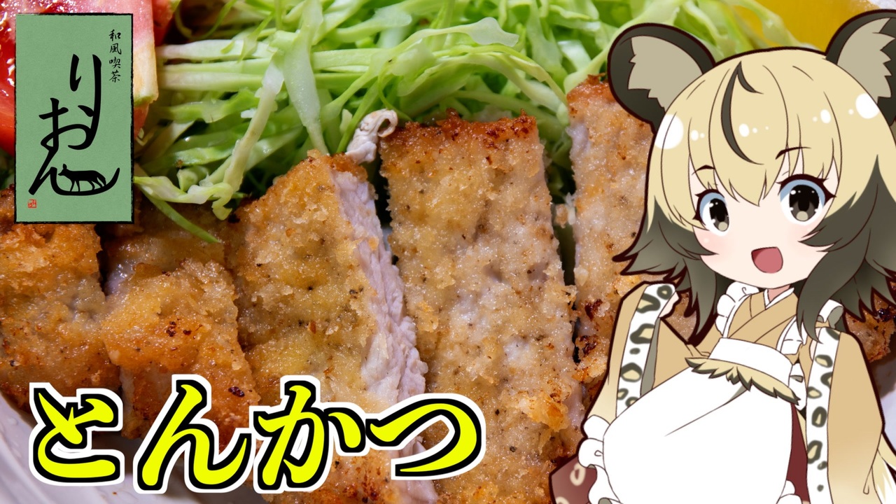 今回は再送案件です!!!<br>前回:<a href="https://www.nicovideo.jp/watch/sm40504681" class="watch">sm40504681</a><br>鉄は熱いうちに打ち、とんかつは熱いうちに食べましょう!<br>ということで、「とんかつ」を作っていきましょう。<br><br>揚げ物は得意ではないのですが、<br>ゆっくりと揚げるやり方なら、中はしっとり<br>2度揚げで外はカリッとできますよ<br><br>■材料<br>・豚ロース 1枚<br>・卵<br>・薄力粉<br>・パン粉<br><br>・キャベツ たっぷり<br><br>ソース<br>・すりごま 大さじ1<br>・ケチャップ 大さじ1<br>・ソース 大さじ1<br>(とんかつソースがおすすめ)<br><br>■所要時間<br>作業時間:20分<br><br>youtube:<a href="https://youtu.be/Le2NyZsLgyU" target="_blank" rel="noopener nofollow">https://youtu.be/Le2NyZsLgyU</a><br>twitter:@lycaon_kitchen<br><br>りおんの和風喫茶:<a href="https://www.nicovideo.jp/series/77190" target="_blank" rel="noopener">series/77190</a><br>おつかれごはん:<a href="https://www.nicovideo.jp/series/155690" target="_blank" rel="noopener">series/155690</a><br>手作り和菓子でちょっとひとやすみしませんか?:<a href="https://www.nicovideo.jp/series/155691" target="_blank" rel="noopener">series/155691</a><br>単発・企画もの:<a href="https://www.nicovideo.jp/series/243260" target="_blank" rel="noopener">series/243260</a><br><br>立ち絵:星華 彩二魔 様<br>イラスト:いらすとや、AWD kitchen<br>音源:DOVA-SYNDROME、ポケットサウンド<br>音声:VOICEROID2 紲星あかり、東北イタコ + exVOICE