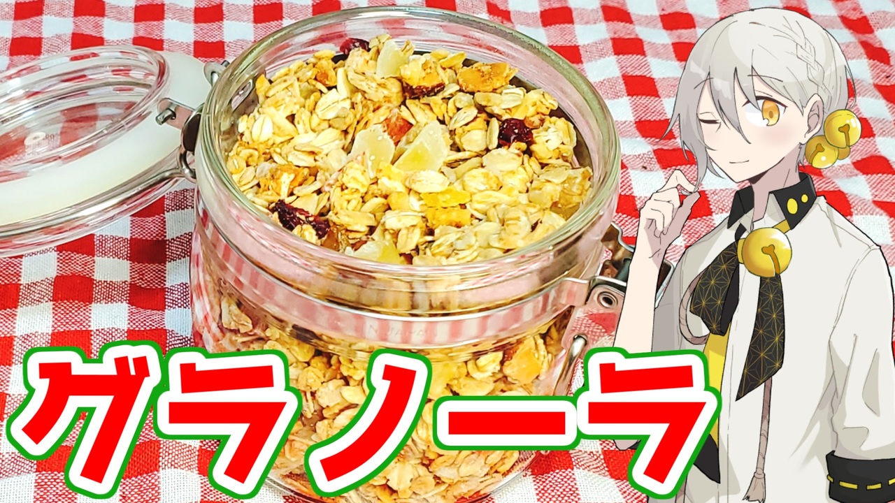 甘さが控えめになってますので、甘党の方ははちみつやドライフルーツの量を増やしてくださいね。<br><br><br>【材料】<br>・オートミール 200g<br>・米粉 大さじ2<br>・オリーブオイル 大さじ2<br>・ミックスナッツ 60g<br>・はちみつ 大さじ2<br>・ドライフルーツ 60g<br><br><br>いつもたくさんの再生・コメント・マイリス・広告・いいね、ありがとうございます!!!<br>特にコメントが面白くて楽しませてもらってます(>ω<)<br>動画を作る原動力(๑•̀ㅂ•́)و✧ゲット!<br><br>今回も素敵な動画を作らせてくれた伊織くんに感謝!<br>そして視聴してくださったあなたに最大の感謝を。<br><br><br>前:冷やし中華【<a href="https://www.nicovideo.jp/watch/sm40528293" class="watch">sm40528293</a>】<br>次:茎レタス【<a href="https://www.nicovideo.jp/watch/sm40602913" class="watch">sm40602913</a>】<br><br><br>ニコ動:<a href="https://www.nicovideo.jp/user/89975609" target="_blank" rel="noopener nofollow">https://www.nicovideo.jp/user/89975609</a><br>You Tube:<a href="https://www.youtube.com/channel/UCWk_a8v_7xG5qCJH8vK6ljg" target="_blank" rel="noopener nofollow">https://www.youtube.com/channel/UCWk_a8v_7xG5qCJH8vK6ljg</a><br>Twitter:<a href="https://twitter.com/yosugacafe_" target="_blank" rel="noopener nofollow">https://twitter.com/yosugacafe_</a> <br><br>ご支援:<a href="https://www.amazon.jp/hz/wishlist/ls/GF2Y4WQQ3UT4?ref_=wl_share" target="_blank" rel="noopener nofollow">https://www.amazon.jp/hz/wishlist/ls/GF2Y4WQQ3UT4?ref_=wl_share</a><br><br>【Ru-a(姉)と共同のアカウント!】(毎月15日更新)<br>ニコ動:<a href="https://www.nicovideo.jp/user/89325934" target="_blank" rel="noopener nofollow">https://www.nicovideo.jp/user/89325934</a><br>You Tube:<a href="https://www.youtube.com/channel/UC12q0n98NSyGykCbsP2G8ig" target="_blank" rel="noopener nofollow">https://www.youtube.com/channel/UC12q0n98NSyGykCbsP2G8ig</a><br>Twitter:<a href="https://twitter.com/witchdouble2" target="_blank" rel="noopener nofollow">https://twitter.com/witchdouble2</a><br>