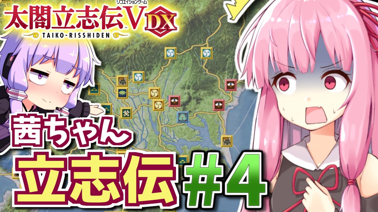 戦国時代が舞台の自由に戦国の世を生き抜く戦略SLG「太閤立志伝5 DX」を、結月ゆかりさんと琴葉茜ちゃんがうつけ型新武将でプレイします。<br>未プレイの初心者向けの丁寧な解説を加えてるのでプレイ済みの方々はご了承ください。<br>第4話は武士プレイの修行回。出世目指して勲功稼ぎを繰り返します。<br><br><br>前 : 第3話(<a href="https://www.nicovideo.jp/watch/sm40548029" class="watch">sm40548029</a>) <-> 次 : (<a href="https://www.nicovideo.jp/watch/sm40606778" class="watch">sm40606778</a>)<br>このシリーズのリンク: <a href="https://www.nicovideo.jp/series/323444" target="_blank" rel="noopener">series/323444</a><br><br>■ プレイ環境: 太閤立志伝V DX PC版 (Ver1.0.1)<br>著作権表示<br>©コーエーテクモゲームス<br><br />HoI4プレイ講座 → (<a href="https://www.nicovideo.jp/mylist/62136132" target="_blank" rel="noopener">mylist/62136132</a>)<br>EU4プレイ講座→(<a href="https://www.nicovideo.jp/mylist/61049948" target="_blank" rel="noopener">mylist/61049948</a>)<br>CK3プレイ講座→(<a href="https://www.nicovideo.jp/series/191974" target="_blank" rel="noopener">series/191974</a>)<br>Stellarisプレイ講座→(<a href="https://www.nicovideo.jp/series/263583" target="_blank" rel="noopener">series/263583</a>)<br>Vic3プレイ講座→(<a href="https://www.nicovideo.jp/series/364690" target="_blank" rel="noopener">series/364690</a>)<br>赤いシムシティ実況動画 → (<a href="https://www.nicovideo.jp/series/8074" target="_blank" rel="noopener">series/8074</a>)<br>太閤立志伝5 DX実況動画→ (<a href="https://www.nicovideo.jp/series/323444" target="_blank" rel="noopener">series/323444</a>)<br>信長の野望 小田家プレイ動画 → (<a href="https://www.nicovideo.jp/series/353641" target="_blank" rel="noopener">series/353641</a>)<br>紲星あかりF1参戦記→(<a href="https://www.nicovideo.jp/series/222744" target="_blank" rel="noopener">series/222744</a>)<br>あかねとあかりのソビエト国境警備隊!→ (<a href="https://www.nicovideo.jp/series/394983" target="_blank" rel="noopener">series/394983</a>)<br>Cities: Skylines2都市開発プレイ動画 → (<a href="https://www.nicovideo.jp/series/436779" target="_blank" rel="noopener">series/436779</a>)<br>Manor Lords村作りプレイ動画 → (<a href="https://www.nicovideo.jp/series/468306" target="_blank" rel="noopener">series/468306</a>)<br>全動画投稿リスト (<a href="https://www.nicovideo.jp/user/77964272" target="_blank" rel="noopener">user/77964272</a>)