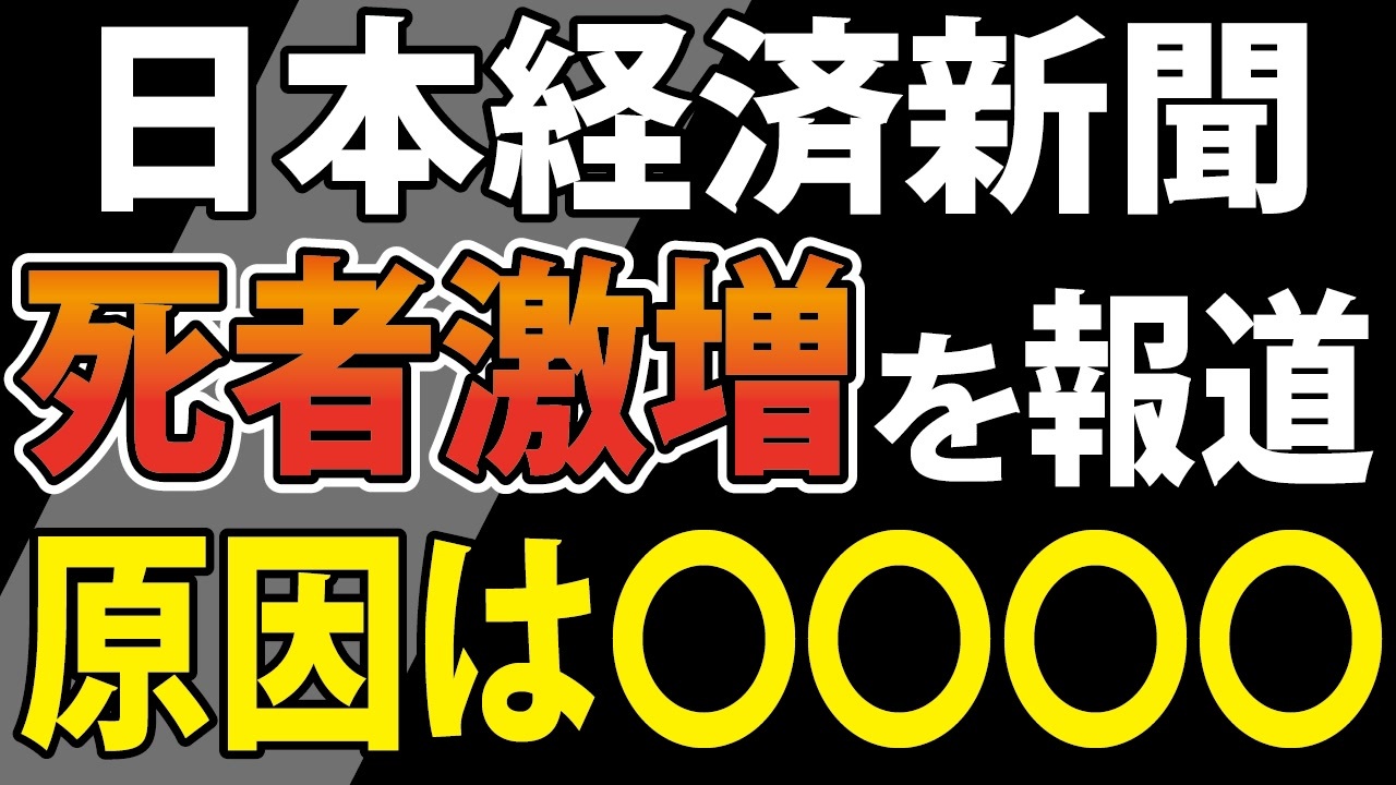 ❑元ネタの日本経済新聞の記事はこちら<br>・国内死亡数が急増、1~3月3.8万人増 コロナ感染死の4倍<br><a href="https://www.nikkei.com/article/DGXZQOUA021SU0S2A600C2000000/?n_cid=SNSTW001&n_tw=1654339351" target="_blank" rel="noopener nofollow">https://www.nikkei.com/article/DGXZQOUA021SU0S2A600C2000000/?n_cid=SNSTW001&n_tw=1654339351</a><br><br><br>――――――――――――――――――――<br><br>❑宮沢孝幸先生の勉強会<br>【講師】宮沢孝幸先生<br>【日付】6月11日(土)<br>【時間】15:00~17:00<br>【場所】千葉中央ホール <br> 千葉市中央区中央3-18-3 加瀬ビル8階<br> ・京成千葉線 千葉中央駅徒歩3分<br> ・JR千葉駅 徒歩10分<br>【参加費】2,000円 当日会場にてお支払い下さい<br>【定員】先着200名<br>【主催】日本の明日のため!千葉<br><br>❏講演会のお申込はこちら<br><a href="https://docs.google.com/forms/d/e/1FAIpQLScNx-i11EXCdMyB2IcfXhfuclJFgfYHuwO2F78N3pIJgXoosg/viewform" target="_blank" rel="noopener nofollow">https://docs.google.com/forms/d/e/1FAIpQLScNx-i11EXCdMyB2IcfXhfuclJFgfYHuwO2F78N3pIJgXoosg/viewform</a><br><br>❏懇親会のお申し込みはこちら 18時~20時 勉強会場付近を予定<br><a href="https://docs.google.com/forms/d/e/1FAIpQLSca06oHU_9ufrUubBJazNp-ir00Z0OWloyPDCz6uY9PHnVd3Q/viewform" target="_blank" rel="noopener nofollow">https://docs.google.com/forms/d/e/1FAIpQLSca06oHU_9ufrUubBJazNp-ir00Z0OWloyPDCz6uY9PHnVd3Q/viewform</a><br>(場所、会費、宮沢先生のご参加など調整中です。)<br>※懇親会のみのご参加はご遠慮ください。<br><br>❏宮沢孝幸先生近著<br><a href="https://amzn.to/38MfnJT" target="_blank" rel="noopener nofollow">https://amzn.to/38MfnJT</a><br><br>―――――――――――――――――――――<br><br>❏藤江の活動を支援していただける方向け<br>【藤江支援口座】のご案内<br>住信SBIネット銀行 ミカン支店(店番号103)<br>口座番号 3107694<br>口座名義 フジエ マサミツ<br><br>――――――――――――――――――――――――――――――<br><br>日本の人口増加を目指す男、藤江です!【メインチャンネル】<br><a href="https://www.youtube.com/c/JINKOUZOUKA/" target="_blank" rel="noopener nofollow">https://www.youtube.com/c/JINKOUZOUKA/</a><br><br>四海兄弟【藤江4thチャンネル】<br><a href="https://www.youtube.com/channel/UCiyJNO57quj80Ysy7nOABvA" target="_blank" rel="noopener nofollow">https://www.youtube.com/channel/UCiyJNO57quj80Ysy7nOABvA</a><br><br>藤江のTwitter<br><a href="https://twitter.com/JINKOUZOUKA_jp" target="_blank" rel="noopener nofollow">https://twitter.com/JINKOUZOUKA_jp</a>