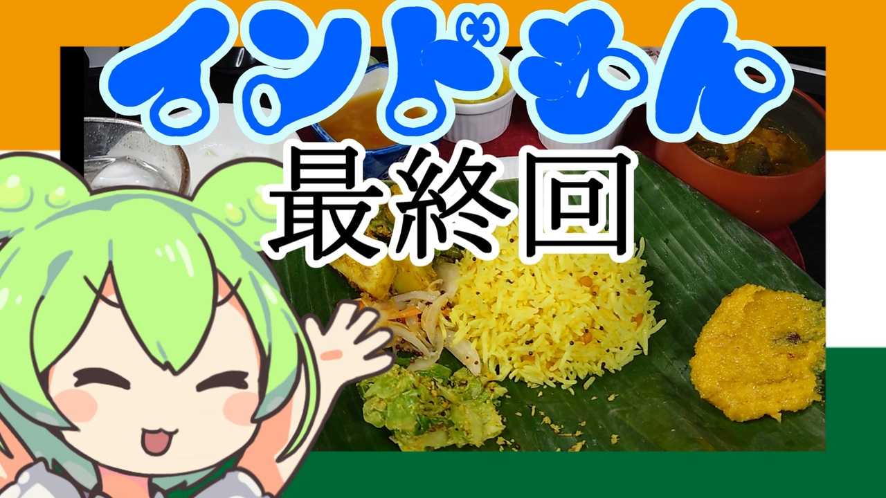 <span style="font-size: 18px;"><strong>皆様、今までのご視聴ありがとうございました。<br>インドもんは、普通の女の子に戻ります!<br>動画投稿は続けてまいりますので、またいずれお会いしましょう</strong></span><br><br><br>ベジ・ミールスを作りました<br><br>サンバル<br>ダールフライ<br>ウェンダッキャ・プルシェーリ<br>ラッサム<br>お芋といんげんのサブジ<br>キャベツのポリヤル<br>ニンジンと玉ねぎのアチャール<br>きゅうりと玉ねぎのライタ<br>レモンライス<br>ラワ・ケサリ<br><br>BGMは、YoutubeStudioのものを使わせていただいています<br><br>ずんだもんというキャラクターと、VOICEVOXのおかげでこのシリーズをここまで続けることができました。<br>東北ずん子公式様 <a href="https://twitter.com/t_zunko" target="_blank" rel="noopener nofollow">https://twitter.com/t_zunko</a> 素敵なキャラクターの創造ありがとうございました<br>VOICEVOX開発者 ヒホ様 <a href="https://twitter.com/hiho_karuta" target="_blank" rel="noopener nofollow">https://twitter.com/hiho_karuta</a> 素晴らしいモデル、ツールの構築、公開ありがとうございました<br>ずんだもん立ち絵製作者 坂本アヒル様 <a href="https://twitter.com/sakamoto_AHR" target="_blank" rel="noopener nofollow">https://twitter.com/sakamoto_AHR</a> 素敵な立ち絵の公開ありがとうございました<br>最後に紹介した絵の作者 伊吹う゛い様 <a href="https://twitter.com/ZundaMontblanc" target="_blank" rel="noopener nofollow">https://twitter.com/ZundaMontblanc</a> 素晴らしすぎる絵を描いていただき、ありがとうございました
