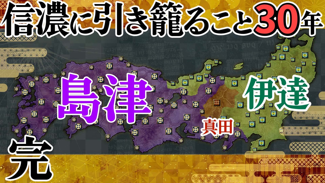 <a href="https://www.nicovideo.jp/watch/sm40555567" class="watch">sm40555567</a>⇦前 パート10 <br>最初パート1➡<a href="https://www.nicovideo.jp/watch/sm40016108" class="watch">sm40016108</a><br><br>途中、期間を開けてしまったシリーズですが、無事完走することができました。<br>最後までご視聴頂きありがとうございました。<br><br><br>【シナリオ】夢幻の如く 上級<br> シナリオ開始30年が経過した状況からの開始です<br><br>【目標】<br>・昌幸が死ぬまでに天下統一(全ての城を制圧)<br>昌幸は5等級までの家宝、医書で延命可<br><br>【やりたいこと】<br>・真田十勇士のイベントを行いたい<br>・水軍を多いに活用したい<br>・技術をできるかぎり極めたい<br><br>※steam版(PC)を購入、windows10でプレイ。<br>問題点:環境はwindows8.1までなのでwindows10では不具合が出るかもしれません。<br>購入を考える際はご注意ください。<br>私の場合は、キーボードを使うとゲームがフリーズします。(私はまだやっていませんが、グーグル日本語入力を入れれば治るそうです)<br>ですので、マウスのみでプレイをしています。<br>部隊の中継点の設定に難がありますが、他は特に支障はない感じです。<br><br>―――――――――――――――――――――――――――<br>◇「アシェの実況プレイ~Part1集~」のマイリスト:<a href="https://www.nicovideo.jp/mylist/56327957" target="_blank" rel="noopener">mylist/56327957</a><br>―――――――――――――――――――――――――――<br>◇Twitter(アシェ):<a href="https://twitter.com/AcierRoi" target="_blank" rel="noopener nofollow">https://twitter.com/AcierRoi</a><br>◇Twitter(レシル):<a href="http://twitter.com/reciru" target="_blank" rel="noopener nofollow">http://twitter.com/reciru</a><br><br>©コーエーテクモゲームス All rights reserved.<br><br>