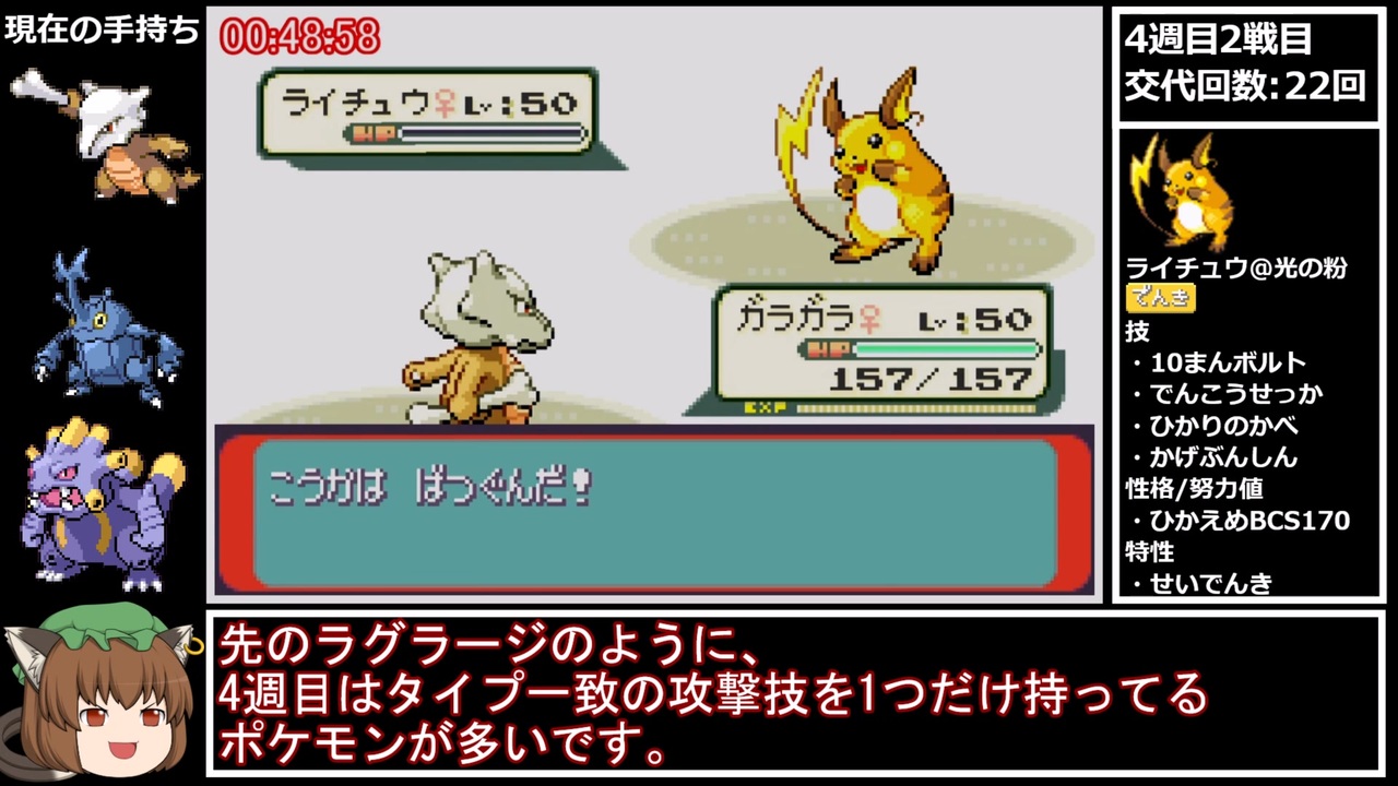 心内評価は5とされておきます。<br><br>前:<a href="https://www.nicovideo.jp/watch/sm40597811" class="watch">sm40597811</a><br>次:<a href="https://www.nicovideo.jp/watch/sm40620284" class="watch">sm40620284</a><br><br>計測区間<br>・タイマースタート:0勝状態でバトルファクトリーの受付に話しかけた瞬間<br>・タイマーストップ:42戦目(金ダツラ)で3体目を倒した瞬間<br><br>レギュレーションなど<br>・使用機種:レトロフリーク<br>・シングルバトル/レベル50<br>・21戦目は必ずダツラとバトル<br>・乱数調整禁止(ゲームリセット/バトルビデオを見る等)<br>・QL/QS/任意コード/チート等禁止<br><br>RTAまとめ:<a href="https://www.nicovideo.jp/mylist/56827667" target="_blank" rel="noopener">mylist/56827667</a><br>更新報告:<a href="https://twitter.com/yamabukiginu" target="_blank" rel="noopener nofollow">https://twitter.com/yamabukiginu</a><br>