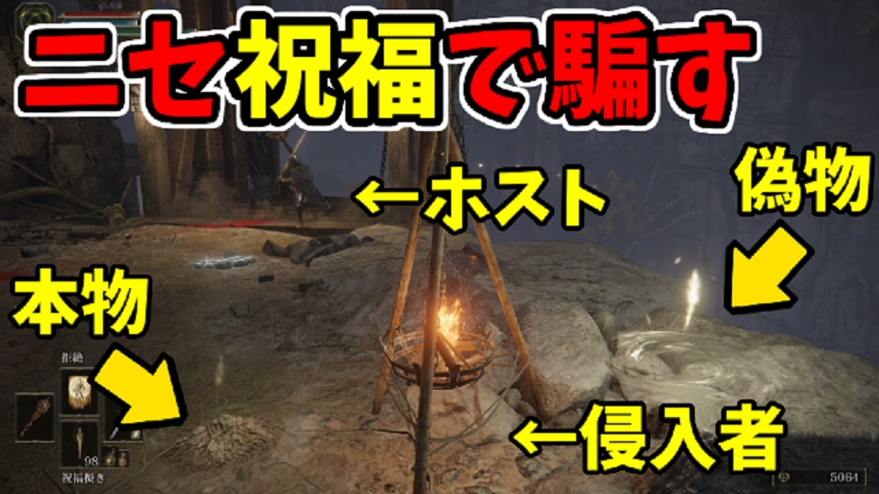 ニセモノの祝福こと祝福擬きで遊んでみました<br>一応技量99<br>拒絶がフォースと違う方向に吹っ飛ぶのがねー;;<br><br><strong>youtube版</strong>⇒<a href="https://www.youtube.com/watch?v=Ok1OfmNckmQ&t=11s" target="_blank" rel="noopener nofollow">https://www.youtube.com/watch?v=Ok1OfmNckmQ&t=11s</a><br>コナンの黒い人の侵入⇒<a href="https://www.nicovideo.jp/watch/sm40123217" target="_blank" rel="noopener nofollow">https://www.nicovideo.jp/watch/sm40123217</a><br>その他のエルデンリング動画はYouTubeにあげてます<br>YouTube⇒<a href="https://www.youtube.com/channel/UC4BkylcNgiMoFvpYPpcZEEw" target="_blank" rel="noopener nofollow">https://www.youtube.com/channel/UC4BkylcNgiMoFvpYPpcZEEw</a><br>Twitter⇒<a href="https://twitter.com/0141ktkr" target="_blank" rel="noopener nofollow">https://twitter.com/0141ktkr</a>