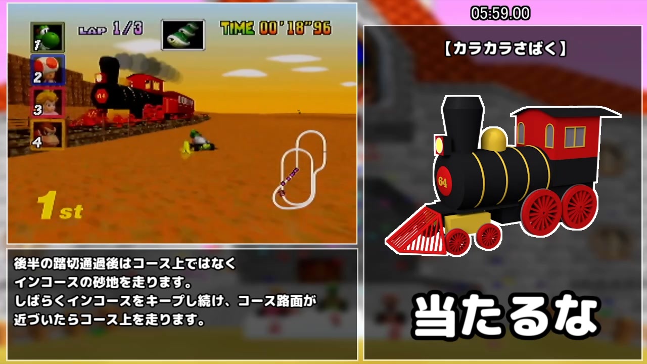 マリオカート64 150ccGPモード全カップのショートカットなしのRTA解説動画を作りました。<br>MTはミニターボの略です。ルイージサーキットからマリオサーキットまで。<br><br>Part2/2(<a href="https://www.nicovideo.jp/watch/sm40620418" class="watch">sm40620418</a>)<br>Youtube版:<a href="https://youtu.be/X3KtW9ApoBM" target="_blank" rel="noopener nofollow">https://youtu.be/X3KtW9ApoBM</a><br>skipsRTA解説動画(<a href="https://www.nicovideo.jp/watch/sm39754186" class="watch">sm39754186</a>)<br><br>テクニック集(<a href="https://www.nicovideo.jp/watch/sm39744838" class="watch">sm39744838</a>)<br><br>【アイテムバグゾーン、アイテムテーブルのソース元】<br><a href="http://tasvideos.org/GameResources/N64/MarioKart64.html" target="_blank" rel="noopener nofollow">http://tasvideos.org/GameResources/N64/MarioKart64.html</a>