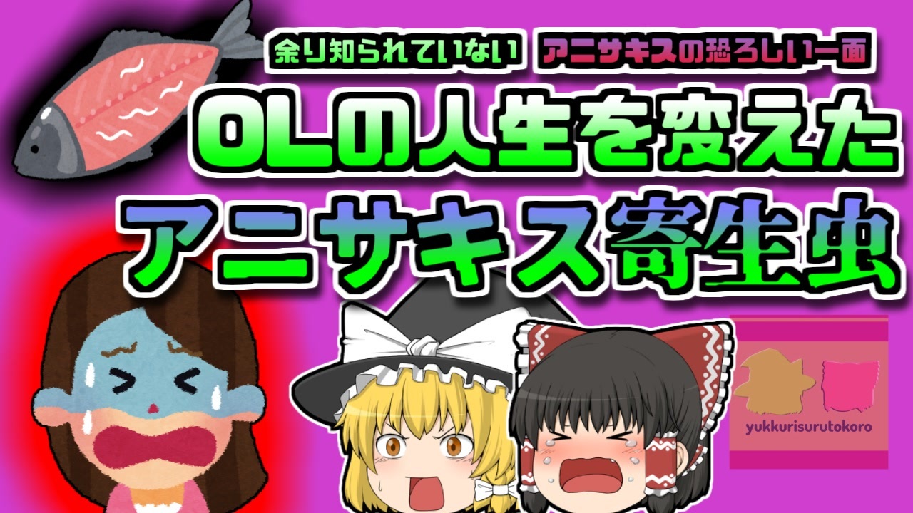 今回は以前から多くのリクエストがありました、「寄生虫」に関する事例の紹介です。<br>東京都某所に暮らす女性「Aさん」はこの日、スーパーで購入したサバを焼き、夕食として食べていました。<br>しかし、食後の入浴中、突然全身に発疹が出て真っ赤になり、呼吸までが苦しくなる、ある種のショック症状に襲われました。<br>すぐに救急車を呼び、彼女は病院に運ばれていきました。<br>検査の結果「アニサキスアレルギー」だと診断された彼女。<br>しかし、Aさんは以前から釣りと料理好きで、アニサキスなどの寄生虫に関しては、人一倍気を付けて調理をしていました。<br>納得できない彼女でしたが、実はこれはアニサキス自体が動いて彼女の体を蝕んでいたわけではありませんでした。<br><br>ではなぜ、彼女は突然このようなアナフィラキシーショック症状を引き起こしていたのでしょうか?<br>それには、彼女が数年前に患っていた「アニサキス症」、そしてその後の食生活が影響していたのです。<br><br><a href="#" class="seekTime" data-seekTime="00:00" onclick="seekNicoPlayer('#00:00'); return false;">#00:00</a> 冒頭挨拶<br><a href="#" class="seekTime" data-seekTime="00:24" onclick="seekNicoPlayer('#00:24'); return false;">#00:24</a> 視聴上の注意<br><a href="#" class="seekTime" data-seekTime="1:06" onclick="seekNicoPlayer('#1:06'); return false;">#1:06</a> 現地の説明<br><a href="#" class="seekTime" data-seekTime="2:08" onclick="seekNicoPlayer('#2:08'); return false;">#2:08</a> 新人OLの「Aさん」<br><a href="#" class="seekTime" data-seekTime="2:48" onclick="seekNicoPlayer('#2:48'); return false;">#2:48</a> 休日は料理を<br><a href="#" class="seekTime" data-seekTime="3:19" onclick="seekNicoPlayer('#3:19'); return false;">#3:19</a> 異変<br><a href="#" class="seekTime" data-seekTime="4:48" onclick="seekNicoPlayer('#4:48'); return false;">#4:48</a> 病院で検査<br><a href="#" class="seekTime" data-seekTime="5:50" onclick="seekNicoPlayer('#5:50'); return false;">#5:50</a> 「アニサキス」<br><a href="#" class="seekTime" data-seekTime="6:34" onclick="seekNicoPlayer('#6:34'); return false;">#6:34</a> アレルギー<br><a href="#" class="seekTime" data-seekTime="7:47" onclick="seekNicoPlayer('#7:47'); return false;">#7:47</a> 体内に入ればアウト<br><a href="#" class="seekTime" data-seekTime="9:42" onclick="seekNicoPlayer('#9:42'); return false;">#9:42</a> 人生が変わってしまったAさん<br><a href="#" class="seekTime" data-seekTime="12:52" onclick="seekNicoPlayer('#12:52'); return false;">#12:52</a> 「アニサキス症」の予防法<br><br><br>引用・出展・参考文献<br>農林水産省<br><a href="https://ishort.ink/Z3cp" target="_blank" rel="noopener nofollow">https://ishort.ink/Z3cp</a><br>厚生労働省<br><a href="https://ishort.ink/65ce" target="_blank" rel="noopener nofollow">https://ishort.ink/65ce</a><br>東京都健康安全研究センター<br><a href="https://ishort.ink/mgfY" target="_blank" rel="noopener nofollow">https://ishort.ink/mgfY</a><br>魚食普及推進センター<br><a href="https://ishort.ink/Beiw" target="_blank" rel="noopener nofollow">https://ishort.ink/Beiw</a><br>アニサキスによる食中毒を予防しましょう<br><a href="https://ishort.ink/4pv4" target="_blank" rel="noopener nofollow">https://ishort.ink/4pv4</a><br>その他視聴者提供資料など<br><br><br />※この動画は過去の事件を知り、現在でも同じことが発生する危険性を再認識、関与しないように促すための動画であり、視聴者を扇動、動揺を誘うためのコンテンツではありません。<br><br>ご要望にお応えして、メンバーシップの開設を行いました。<br>下記URLからも登録可能ですので、ご興味がある方は是非ご参加ください。<br><a href="https://www.youtube.com/channel/UCcT5a1J7XJW7CLYI2RKl4pw/join" target="_blank" rel="noopener nofollow">https://www.youtube.com/channel/UCcT5a1J7XJW7CLYI2RKl4pw/join</a><br><br><br>Twitter<br>→<a href="https://twitter.com/yukkurisurutoko" target="_blank" rel="noopener nofollow">https://twitter.com/yukkurisurutoko</a><br><br>取り急ぎ、簡易的にですがマイリストを作りました。<br>【ゆっくり解説】事故・事件関係紹介リスト <br><a href="https://www.nicovideo.jp/mylist/71034319" target="_blank" rel="noopener nofollow">https://www.nicovideo.jp/mylist/71034319</a><br>【ゆっくり解説】放射線系事故<br><a href="https://www.nicovideo.jp/mylist/71034368" target="_blank" rel="noopener nofollow">https://www.nicovideo.jp/mylist/71034368</a><br>【ゆっくり解説】鉄道系事故・事件関連<br><a href="https://www.nicovideo.jp/mylist/71034379" target="_blank" rel="noopener nofollow">https://www.nicovideo.jp/mylist/71034379</a>