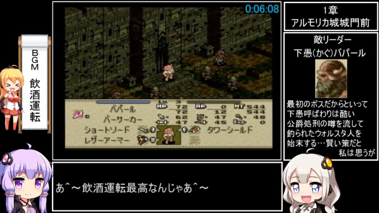 原点に帰って初投稿です。<br>6月5日の生放送で走った回を動画にしてます。<br>そろそろTactics Ogre:Rebornの発表があるかもしれませんね。<br><br>part2→<a href="https://www.nicovideo.jp/watch/sm40652020" class="watch">sm40652020</a><br><br>マイリスト→<a href="https://www.nicovideo.jp/mylist/73323226" target="_blank" rel="noopener">mylist/73323226</a><br>過去作投稿一覧→<a href="https://www.nicovideo.jp/mylist/63487603" target="_blank" rel="noopener">mylist/63487603</a><br>ニコ生RTAコミュニティ→co3832963<br><br>