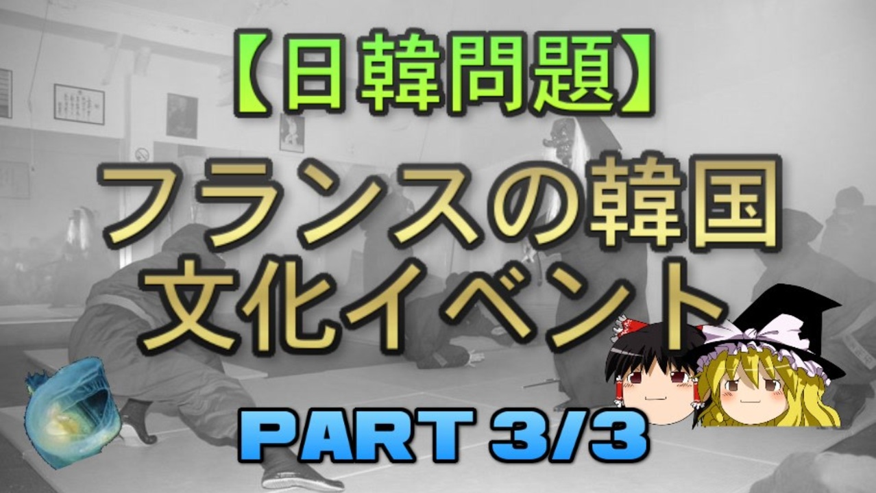 さて、今回も前回、前々回に引き続き2009年から2012年にかけてフランスで開催されていた韓国文化イベントについて扱っていきます。<br>今はdoyoubi<br><br>本日のブログ記事<br><a href="https://oogchib.hateblo.jp/entry/2022/06/19/013447" target="_blank" rel="noopener nofollow">https://oogchib.hateblo.jp/entry/2022/06/19/013447</a><br><br>関連記事<br>「Japan Expoに寄生しないで独自のコリアエキスポやればいいのに」→過去にやった事があります<br><a href="https://oogchib.hateblo.jp/entry/ar565115" target="_blank" rel="noopener nofollow">https://oogchib.hateblo.jp/entry/ar565115</a><br>「柔術」の韓国起源説<br><a href="https://oogchib.hateblo.jp/entry/ar1354964" target="_blank" rel="noopener nofollow">https://oogchib.hateblo.jp/entry/ar1354964</a><br><br>関連動画<br>【日韓問題】フランスのJapan Expoと韓国の問題 前編<br><a href="https://www.nicovideo.jp/watch/sm31493408" class="watch">sm31493408</a><br>【ゆっくり解説】韓国が韓流を始めた理由 part1/2<br><a href="https://www.nicovideo.jp/watch/sm38944520" class="watch">sm38944520</a><br>【日韓問題】韓国起源説全般の解説 前編<br><a href="https://www.nicovideo.jp/watch/sm32789962" class="watch">sm32789962</a><br>【ゆっくり解説】韓国起源説-Strikes Back- part1/2<br><a href="https://www.nicovideo.jp/watch/sm38777074" class="watch">sm38777074</a><br>韓国人とテコンドー<br><a href="https://www.nicovideo.jp/watch/sm38097103" class="watch">sm38097103</a><br><br>引用ソースと動画のテキストをブログ日韓問題(初心者向け)のほうへ掲載しています。<br><br>日韓問題(初心者向け)<br><a href="https://oogchib.hateblo.jp/" target="_blank" rel="noopener nofollow">https://oogchib.hateblo.jp/</a><br>移転前旧ブログ<br><a href="https://ch.nicovideo.jp/ooguchib/blomaga" target="_blank" rel="noopener nofollow">https://ch.nicovideo.jp/ooguchib/blomaga</a><br><br>暇つぶしにどうぞ<br><a href="http://ooguchib.blog.fc2.com/" target="_blank" rel="noopener nofollow">http://ooguchib.blog.fc2.com/</a> <br><br>twitter @ooguchib<br><a href="https://twitter.com/ooguchib" target="_blank" rel="noopener nofollow">https://twitter.com/ooguchib</a><br><br>前 <a href="https://www.nicovideo.jp/watch/sm40609447" class="watch">sm40609447</a> <a href="https://www.nicovideo.jp/mylist/59069876" target="_blank" rel="noopener">mylist/59069876</a> 次回 <a href="https://www.nicovideo.jp/watch/sm40678116" class="watch">sm40678116</a><br><br>番外編マイリスト<br><a href="https://www.nicovideo.jp/mylist/62992608" target="_blank" rel="noopener">mylist/62992608</a><br><br>YouTube版<br><a href="https://youtu.be/EZpYHqysHgA" target="_blank" rel="noopener nofollow">https://youtu.be/EZpYHqysHgA</a><br>