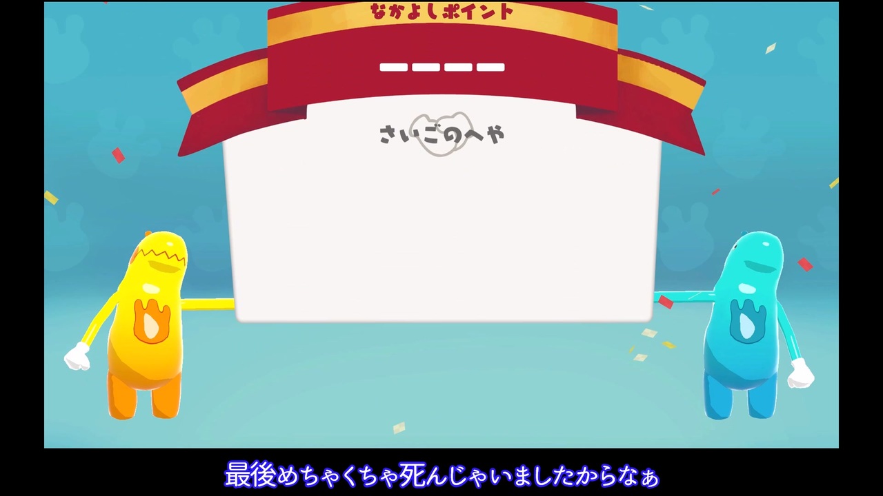 「おもちゃ部屋」からの脱出を目指す運命共同体アクションゲーム『Goonect』。ステージからの落下はもちろん、繋いでいる手が離れてしまってもアウト。クリアタイムやミスの回数等から2人の「なかよし度」が評価されるという、5月27日にリリースされた無料ゲームです!<br>お友達とのプレイはもちろん、ランダムマッチも出来ますよb<br><br>こちらで最終回となります!たくさん可愛いの声を頂きましてとても嬉しいです、ありがとうございました!<br><br>【ファンアート提供】*15:09辺<br>・いか10様(<a href="https://www.nicovideo.jp/user/1695344" target="_blank" rel="noopener">user/1695344</a>)<br> 一緒に遊んでくださっただけでなくこんな素敵なイラストまで描いてくださって感謝しかありません…!本当にありがとうございました!<br><br>*動画冒頭に加えて注意*<br>・2人は楽しくプレイしておりますので、指示コメントやプレイヤーに対してマイナスなコメントはお控えください。<br>・我々や他者が見て不快だと思われる可能性のあるコメントにつきましては、こちらの判断で非表示にさせていただきます。また、そのようなコメントはなさらないよう、お心遣いをいただけますと幸いです。<br><br>*動画内のゲーム画像は公式が配布されている素材です。<br><br>【プレイヤー】<br>・IDIA(青)…いか10様(<a href="https://www.nicovideo.jp/user/1695344" target="_blank" rel="noopener">user/1695344</a>)<br>・Azul(黄)…鱗瞳(投稿主)<br><br>【ゲーム】<br>・『Goonect』【Steam】<br><a href="https://store.steampowered.com/app/1850360/Goonect/" target="_blank" rel="noopener nofollow">https://store.steampowered.com/app/1850360/Goonect/</a><br>作品著作表記<br>©Bandai Namco Studios Inc.<br>Published by Phoenixx Inc.<br><br>【編集ソフト】<br>・ゆっくりMovieMaker4<br><br>【BGM】<br>・魔王魂<br><br>ご意見・ご感想をいただけると喜びます↓<br>Twitter:@rindoct83_2525<br>マシュマロ:<a href="https://marshmallow-qa.com/rindoct83_2525?utm_medium=twitter&utm_source=promotion" target="_blank" rel="noopener nofollow">https://marshmallow-qa.com/rindoct83_2525?utm_medium=twitter&utm_source=promotion</a><br>