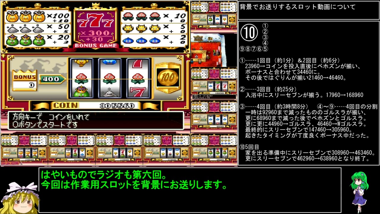 ラジオは今回で最終回……の予定。<br>何が一番大変だったかって、いいねボタンのお礼で書くドラクエトリビアが大変でした。<br><br>前→<a href="https://www.nicovideo.jp/watch/sm40651990" class="watch">sm40651990</a> <br><br>YouTube版→<a href="https://youtu.be/N1sp0GBiAuA" target="_blank" rel="noopener nofollow">https://youtu.be/N1sp0GBiAuA</a><br><br><br>※動画の大きさが変わる方は、お手数ですが設定→画質を自動から〇pに変えると解決します。<br>※一部機種は互換機を使用してのプレイとなります。<br><br>縛りルール(不明点はシリーズのQ&Aを参照)<br>①使った武器・防具・装飾品・道具・呪文・特技・一部特殊施設(メダル王・カジノ・移民の町)・職業(3,6,7)・仲間モンスター(4,5,6,8+7の職業)は次以降のシリーズで使用禁止。<br>(NPCキャラが使用した装備や呪文を含む。売却及び錬金素材としても使用扱い)<br><br>②裏技・バグ技の禁止。<br><br>③逃走禁止&戦闘終了時は全員生存。<br><br>④レベルを上げ過ぎない。<br>ダンジョンやボスは公式ガイドブックに記載されたレベル+3まで。<br>ラスボスは全ての呪文を習得するレベル+3程度までに収める。<br><br>⑤裏ボスも規定回数、規定ターン以内に倒す。<br>(6の裏ダンジョン突入時のみ、条件を満たすため①の職業を解禁)<br><br>(おまけ)<br>宝は可能なものに限り全回収。<br>5と6は同一モンスターの仲間不可。<br>回避可能なボスも全て倒す。<br><br><br>この動画で利用している株式会社スクウェア・エニックスを代表とする共同著作者が権利を所有する著作物及びスギヤマ工房有限会社が権利を所有する楽曲の転載・配布は禁止いたします。<br>(C) ARMOR PROJECT/BIRD STUDIO/SQUARE ENIX All Rights Reserved.<br>(C) SUGIYAMA KOBO (P) SUGIYAMA KOBO<br><br>AquesTalk2ライセンスID:AQTK2WINUSR23122185<br /><br><br>❤いいねを押していただけるとモチベーションと投稿速度が上がるので宜しくお願い致します!<br><br>作者ツイッター→ <a href="https://twitter.com/nig0117" target="_blank" rel="noopener nofollow">https://twitter.com/nig0117</a><br>PIXIV FANBOX→ <a href="https://sutanokeiji.fanbox.cc/" target="_blank" rel="noopener nofollow">https://sutanokeiji.fanbox.cc/</a><br><br>( 以前はWEB小説書いてました→ <a href="https://kakuyomu.jp/works/1177354054884910267" target="_blank" rel="noopener nofollow">https://kakuyomu.jp/works/1177354054884910267</a> )