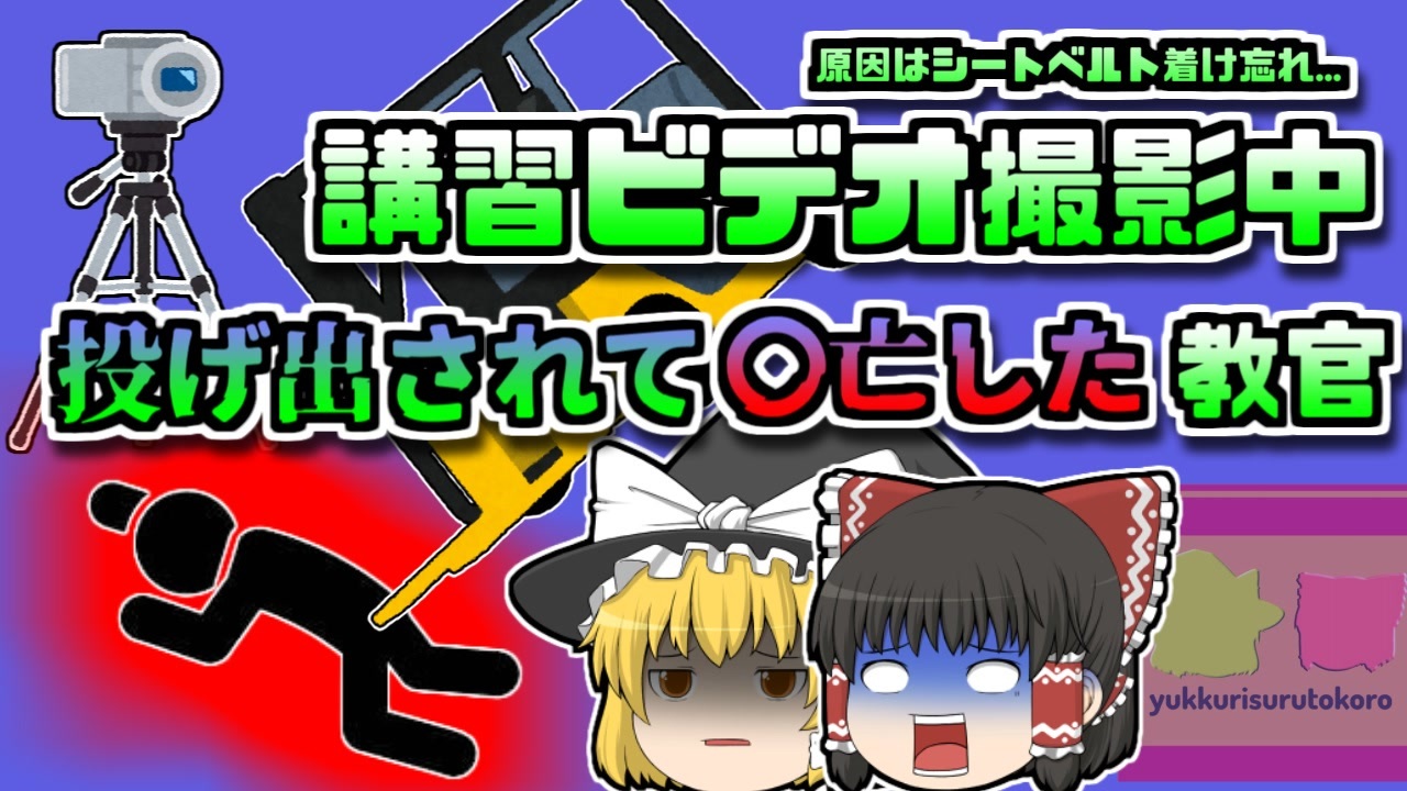 今回紹介するのは、以前から多くのリクエストがありました、<br>「フォークリフト」に関する事例です。<br>オーストラリア某所にある、運転技能教習所ではこの日、ベテラン教官の男性「Aさん」による、安全衛生講習用のビデオ撮影が行われていました。<br>彼はその中で、速度を出しての危険運転や、急ブレーキの制動、その他の危険などを伝えるため、実際にフォークリフトを運転し、それらの運転を実践しました。<br>しかし、彼はシートベルトの着用を失念しており、急ブレーキをかけたとたん、<br>車外へと投げ出され、その上に転倒してきたフォークリフトによって潰されてしまい、帰らぬ人となってしまいました。<br>安全のための講習ビデオ撮影で、まさかの事態が起きてしまったのです。<br><br><a href="#" class="seekTime" data-seekTime="00:00" onclick="seekNicoPlayer('#00:00'); return false;">#00:00</a> 冒頭挨拶<br><a href="#" class="seekTime" data-seekTime="00:51" onclick="seekNicoPlayer('#00:51'); return false;">#00:51</a> 視聴上の注意<br><a href="#" class="seekTime" data-seekTime="1:24" onclick="seekNicoPlayer('#1:24'); return false;">#1:24</a> 現地の説明<br><a href="#" class="seekTime" data-seekTime="2:11" onclick="seekNicoPlayer('#2:11'); return false;">#2:11</a> 教習所の教官「Aさん」<br><a href="#" class="seekTime" data-seekTime="2:47" onclick="seekNicoPlayer('#2:47'); return false;">#2:47</a> 講習ビデオ<br><a href="#" class="seekTime" data-seekTime="3:43" onclick="seekNicoPlayer('#3:43'); return false;">#3:43</a> 急ブレーキ制動<br><a href="#" class="seekTime" data-seekTime="4:04" onclick="seekNicoPlayer('#4:04'); return false;">#4:04</a> 予定とは違い…<br><a href="#" class="seekTime" data-seekTime="4:46" onclick="seekNicoPlayer('#4:46'); return false;">#4:46</a> 原因はシートベルトの締め忘れ<br><a href="#" class="seekTime" data-seekTime="5:40" onclick="seekNicoPlayer('#5:40'); return false;">#5:40</a> 重さ1t以上の大型フォークリフト<br><a href="#" class="seekTime" data-seekTime="3:36" onclick="seekNicoPlayer('#3:36'); return false;">#3:36</a> わが国では義務化はされていないが…<br><a href="#" class="seekTime" data-seekTime="8:44" onclick="seekNicoPlayer('#8:44'); return false;">#8:44</a> 機械面での対策<br><br>引用・出展・参考文献<br>ドライバータイムズ<br><a href="https://ishort.ink/jqsn" target="_blank" rel="noopener nofollow">https://ishort.ink/jqsn</a><br>Wikipedia<br><a href="https://ishort.ink/yazM" target="_blank" rel="noopener nofollow">https://ishort.ink/yazM</a><br>旭フォークリフト㈱<br><a href="https://ishort.ink/R7dV" target="_blank" rel="noopener nofollow">https://ishort.ink/R7dV</a><br>PCS㈱<br><a href="https://ishort.ink/mWUM" target="_blank" rel="noopener nofollow">https://ishort.ink/mWUM</a><br>㈱安全講習センター<br><a href="https://ishort.ink/kSdd" target="_blank" rel="noopener nofollow">https://ishort.ink/kSdd</a><br>SAFETY News |<br><a href="https://ishort.ink/gCbB" target="_blank" rel="noopener nofollow">https://ishort.ink/gCbB</a><br><br><br><br><br><br><br />※この動画は過去の事件を知り、現在でも同じことが発生する危険性を再認識、関与しないように促すための動画であり、視聴者を扇動、動揺を誘うためのコンテンツではありません。<br><br>ご要望にお応えして、メンバーシップの開設を行いました。<br>下記URLからも登録可能ですので、ご興味がある方は是非ご参加ください。<br><a href="https://www.youtube.com/channel/UCcT5a1J7XJW7CLYI2RKl4pw/join" target="_blank" rel="noopener nofollow">https://www.youtube.com/channel/UCcT5a1J7XJW7CLYI2RKl4pw/join</a><br><br><br>Twitter<br>→<a href="https://twitter.com/yukkurisurutoko" target="_blank" rel="noopener nofollow">https://twitter.com/yukkurisurutoko</a><br><br>取り急ぎ、簡易的にですがマイリストを作りました。<br>【ゆっくり解説】事故・事件関係紹介リスト <br><a href="https://www.nicovideo.jp/mylist/71034319" target="_blank" rel="noopener nofollow">https://www.nicovideo.jp/mylist/71034319</a><br>【ゆっくり解説】放射線系事故<br><a href="https://www.nicovideo.jp/mylist/71034368" target="_blank" rel="noopener nofollow">https://www.nicovideo.jp/mylist/71034368</a><br>【ゆっくり解説】鉄道系事故・事件関連<br><a href="https://www.nicovideo.jp/mylist/71034379" target="_blank" rel="noopener nofollow">https://www.nicovideo.jp/mylist/71034379</a>