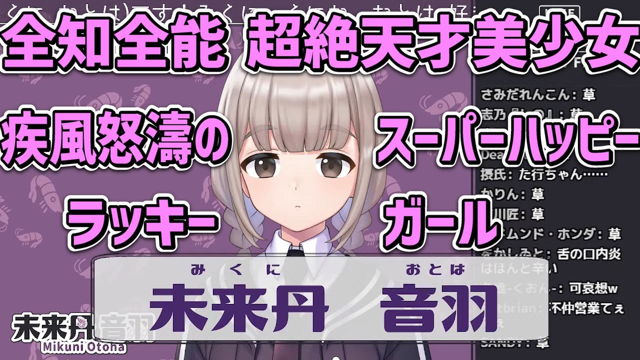 切り抜きと変わらぬテンポ感で30分間突き進んでるのでこのまま本編も見て<br><br>●本編<br> 【初配信】いっちょ、羽ばたいちゃおっかな~~^^【未来丹音羽/バーチャル・タレント・アカデミー/VTA2期生】<br> <a href="https://www.youtube.com/watch?v=R7OEbob5nwE&t=383s" target="_blank" rel="noopener nofollow">https://www.youtube.com/watch?v=R7OEbob5nwE&t=383s</a><br><br>●バーチャル・タレント・アカデミー(未来丹音羽)<br> youtubeチャンネル<br> <a href="https://www.youtube.com/channel/UC4Jyg9gFStHO8r5n4ya7XCQ" target="_blank" rel="noopener nofollow">https://www.youtube.com/channel/UC4Jyg9gFStHO8r5n4ya7XCQ</a><br> twitter<br> <a href="https://twitter.com/VTA_ANYCOLOR" target="_blank" rel="noopener nofollow">https://twitter.com/VTA_ANYCOLOR</a><br><br>●投稿した動画<br> vtuberに関する様々な動画をあげてます!<br> <a href="https://www.nicovideo.jp/my/mylist/#/68294851" target="_blank" rel="noopener nofollow">https://www.nicovideo.jp/my/mylist/#/68294851</a><br> 意見,要望,感想はこちらまで<br> <a href="https://twitter.com/takutekutakut" target="_blank" rel="noopener nofollow">https://twitter.com/takutekutakut</a>