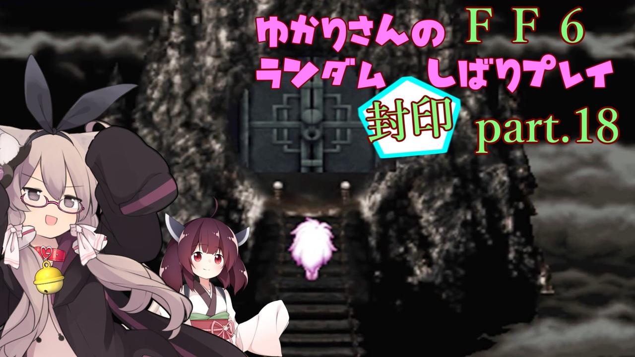 スマホ版FF6のランダム封印縛り第十八回です。<br>(ピクセルリマスター版ではありません)<br><br>またもや間が空いてしまってすみません。<br>お待たせしました。<br>よろしくお願いします。<br><br>投稿してから気づきましたが、歩数やらかしてます。<br><br>【ルール及び目標】<br>・1レベルアップで1封印<br>・歩数ガバ1回で1封印<br>・5の倍数の封印は取得済、習得済から抽選<br>・封印物は売却可、コロシアム可<br>・アイテムコンプリート(だいじなもの除く)<br>・魔石コンプリート<br>・魔法と暴れる以外のアビリティコンプリート<br>・仲間は全員揃える<br>・なるべく低歩数<br>・バグ技は使わない<br><br>【封印対象】418件<br>・各種アイテム、装備品<br>・魔法<br>・魔石<br>・暴れる以外のコマンドアビリティ<br><br>【封印対象外】<br>・ぬすむ<br>・魔石ラグナロック<br>・ちぬられたたて<br>・ものまね<br>・テレポ<br><br>【お借りした立ち絵】<br>夏樹テル様 <a href="https://seiga.nicovideo.jp/seiga/im7077733" target="_blank" rel="noopener">im7077733</a>、<a href="https://seiga.nicovideo.jp/seiga/im9245138" target="_blank" rel="noopener">im9245138</a><br>-翠-様 <a href="https://seiga.nicovideo.jp/seiga/im7909843" target="_blank" rel="noopener">im7909843</a><br>nakatomi様 <a href="https://seiga.nicovideo.jp/seiga/im10742089" target="_blank" rel="noopener">im10742089</a><br>デムサト様 <a href="https://seiga.nicovideo.jp/seiga/im10682961" target="_blank" rel="noopener">im10682961</a><br>こーすけさんたまりあ様 <a href="https://seiga.nicovideo.jp/seiga/im10027574" target="_blank" rel="noopener">im10027574</a><br><br>【先駆者様】<br>ほっしゅ様 「FF4 封印縛り」<a href="https://www.nicovideo.jp/series/307231" target="_blank" rel="noopener">series/307231</a><br>うだまん様 「完全ランダム封印でFF6を通常プレイ」<a href="https://www.nicovideo.jp/series/222220" target="_blank" rel="noopener">series/222220</a><br><br><br>前回:<a href="https://www.nicovideo.jp/watch/sm40286313" class="watch">sm40286313</a><br>一覧:<a href="https://www.nicovideo.jp/series/229325" target="_blank" rel="noopener">series/229325</a><br><br>他動画シリーズもよろしくお願いします。<br>デュエルリンクス:<a href="https://www.nicovideo.jp/series/36738" target="_blank" rel="noopener">series/36738</a><br>ディグダ縛り(ポケモン盾):<a href="https://www.nicovideo.jp/series/141165" target="_blank" rel="noopener">series/141165</a><br>マスターデュエル:<a href="https://www.nicovideo.jp/series/141164" target="_blank" rel="noopener">series/141164</a>