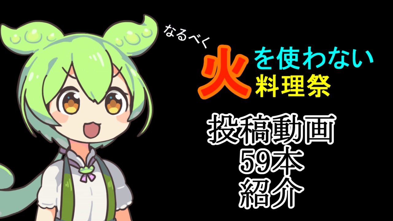 2022年6月24日~26日に開催した、<br><span style="font-size: 18px;">なるべく</span><span style="color: #ff0000; font-size: 18px;"><strong>火</strong></span><span style="font-size: 18px;">を使わない料理祭</span><br>に参加してくださった動画59本のご紹介です<br><br><span style="font-size: 24px;"><strong>参加してくださった方の動画リスト:<br><a href="https://www.nicovideo.jp/mylist/73332480" target="_blank" rel="noopener">mylist/73332480</a></strong></span><br>ご参加いただき、本当にありがとうございました<br><br>BGMはMusMus様のものを使用しています:<br><a href="https://www.youtube.com/watch?v=l1_e-SVOfbg" target="_blank" rel="noopener nofollow">https://www.youtube.com/watch?v=l1_e-SVOfbg</a><br><a href="https://musmus.main.jp/" target="_blank" rel="noopener nofollow">https://musmus.main.jp/</a>