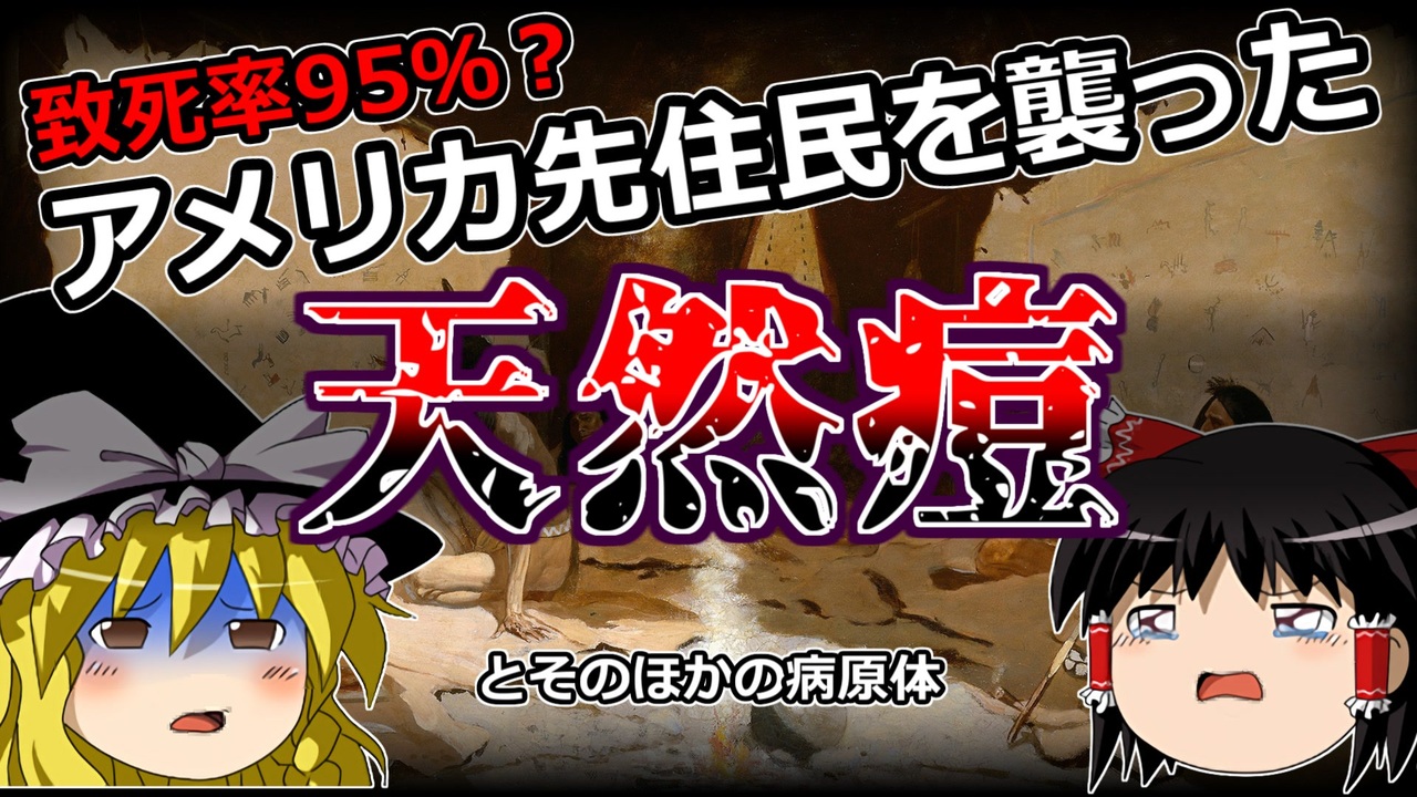 大航海時代とともにアメリカ大陸にやってきた病原体は、先住民にエグいほどの被害をもたらしました。<br>気分の悪い時には見ないようにお願いします。<br><br>背景ゲーム画面:Age of Empires Ⅱ<br>Age of Empires Ⅱ © Microsoft Corporation. ゆっくりモンドちゃんねるの一部背景は、Microsoft の「ゲーム コンテンツ利用規約」 に基づき、Age of Empires Ⅱのアセットを使用して作成されたものであり、Microsoft との提携または Microsoft による承認を意味するものではありません。 <br>参照 Xbox ゲームコンテンツ利用規約 <a href="https://www.xbox.com/ja-JP/developers/rules" target="_blank" rel="noopener nofollow">https://www.xbox.com/ja-JP/developers/rules</a><br><br />━━━━━━━━━━━━━━━━━━━━━<br><br>この動画はクリエイティブ・コモンズ継承(CC-BY-SA)ライセンスの素材を使用して制作しています。(<a href="https://creativecommons.org/licenses/by-sa/4.0/)" target="_blank" rel="noopener nofollow">https://creativecommons.org/licenses/by-sa/4.0/)</a><br>規約に基づき、この動画もCC-BY-SA 4.0 のもとで公開します。<br><br>投稿者共通情報☆彡<br><br>BGM, SE:ニコニ・コモンズ様<br><a href="http://commons.nicovideo.jp/" target="_blank" rel="noopener nofollow">http://commons.nicovideo.jp/</a><br>魔王魂様<br><a href="https://maoudamashii.jokersounds.com/" target="_blank" rel="noopener nofollow">https://maoudamashii.jokersounds.com/</a><br>Audiostock様<br><a href="https://audiostock.jp/" target="_blank" rel="noopener nofollow">https://audiostock.jp/</a><br><br>立ち絵 霊夢・魔理沙(黒子式):nicotalk様<br><a href="http://www.nicotalk.com/charasozai.html" target="_blank" rel="noopener nofollow">http://www.nicotalk.com/charasozai.html</a><br><br>立ち絵 パトラ、マリー、アン、メアリ:ライフライフ様<br><a href="https://0801lifelife.tumblr.com/" target="_blank" rel="noopener nofollow">https://0801lifelife.tumblr.com/</a><br><br>使用ツール1:ゆっくりムービーメーカー4<br><a href="https://manjubox.net/ymm4/" target="_blank" rel="noopener nofollow">https://manjubox.net/ymm4/</a><br><br>使用ツール2:AviUtl<br><a href="http://spring-fragrance.mints.ne.jp/aviutl/" target="_blank" rel="noopener nofollow">http://spring-fragrance.mints.ne.jp/aviutl/</a><br><br>各時代の地図 : World History Maps & Timelines <br><a href="http://geacron.com/home-en/" target="_blank" rel="noopener nofollow">http://geacron.com/home-en/</a><br><br>ゆっくりボイスについて:AquesTalkライセンス取得済み<br><br>キャラクターボイス<br>アン・ボニー:羽ノ華(A.I.VOICE)<br>メアリ・リード:琴葉 葵(A.I.VOICE)<br>クレオパトラ:結月ゆかり(VOICEROID2)<br>マリー‐アントワネット:東北きりたん (VOICEROID EX)<br>その他キャラ:青山龍星(A.I.VOICE)、伊織弓鶴(A.I.VOICE2)、栗田まろん(A.I.VOICE)、宮舞モカ(VOICEPEAK)、フリモメン(VOICEPEAK)<br><br><br><br>その他フリー素材ご提供元の皆様に圧倒的感謝<br>