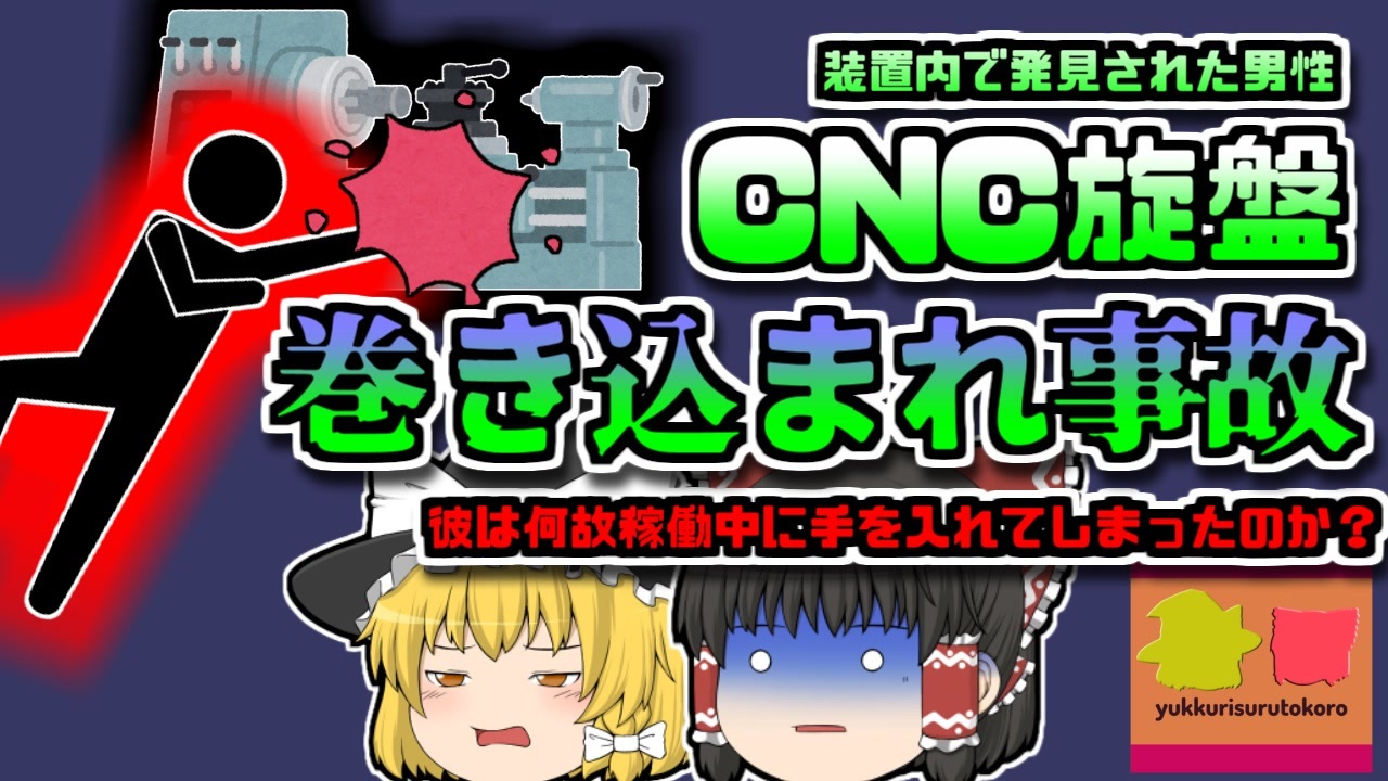 今回紹介するのは、以前からリクエストがありました、「旋盤巻き込まれ」の紹介です。<br>群馬県某所にある、機械部品製造工場では、作業員男性「Aさん」が旋盤を利用した加工作業を行っていました。<br>この旋盤は機械制御によって自動で加工できるタイプの物でしたが、予定よりも削りが甘かったため、何度か設定をし直し、再加工を行いました。<br>しかし、昼休憩の時間になったため、作業を中断し、続きの加工は午後に回すことに。<br>そして、午後の業務が開始された直後。<br>別の作業員男性「B」さんは、Aさんの作業場の隣で業務についていましたが、<br>突然「ゴォン」という大きな音を聞いたため、様子を見に行くことに。<br><br>するとそこには、旋盤に腕を巻き込まれ、意識を失っているAさんの姿が・・・<br>彼は稼働中の旋盤に何故手を近づけてしまったのでしょうか?<br><br><a href="#" class="seekTime" data-seekTime="00:00" onclick="seekNicoPlayer('#00:00'); return false;">#00:00</a> 冒頭挨拶<br><a href="#" class="seekTime" data-seekTime="00:48" onclick="seekNicoPlayer('#00:48'); return false;">#00:48</a> 視聴上の注意<br><a href="#" class="seekTime" data-seekTime="1:28" onclick="seekNicoPlayer('#1:28'); return false;">#1:28</a> 現地の説明<br><a href="#" class="seekTime" data-seekTime="2:21" onclick="seekNicoPlayer('#2:21'); return false;">#2:21</a> 作業員「Aさん」<br><a href="#" class="seekTime" data-seekTime="2:34" onclick="seekNicoPlayer('#2:34'); return false;">#2:34</a> 旋盤加工<br><a href="#" class="seekTime" data-seekTime="3:25" onclick="seekNicoPlayer('#3:25'); return false;">#3:25</a> 修正作業<br><a href="#" class="seekTime" data-seekTime="3:54" onclick="seekNicoPlayer('#3:54'); return false;">#3:54</a> 音を聞いたBさん<br><a href="#" class="seekTime" data-seekTime="4:21" onclick="seekNicoPlayer('#4:21'); return false;">#4:21</a> 変わり果てた姿のAさん<br><a href="#" class="seekTime" data-seekTime="5:06" onclick="seekNicoPlayer('#5:06'); return false;">#5:06</a> 原因の調査<br><a href="#" class="seekTime" data-seekTime="5:40" onclick="seekNicoPlayer('#5:40'); return false;">#5:40</a> 以前から<br><a href="#" class="seekTime" data-seekTime="7:50" onclick="seekNicoPlayer('#7:50'); return false;">#7:50</a> その後の対策<br><br>引用・出展・参考文献<br>Wikipedia<br><a href="https://ishort.ink/5hCJ" target="_blank" rel="noopener nofollow">https://ishort.ink/5hCJ</a><br>厚生労働省<br><a href="https://ishort.ink/NHCV" target="_blank" rel="noopener nofollow">https://ishort.ink/NHCV</a><br>フォートラベル<br><a href="https://ishort.ink/7kEU" target="_blank" rel="noopener nofollow">https://ishort.ink/7kEU</a><br>群馬県<br><a href="https://ishort.ink/PuAH" target="_blank" rel="noopener nofollow">https://ishort.ink/PuAH</a><br>MISUMI<br><a href="https://ishort.ink/MmX8" target="_blank" rel="noopener nofollow">https://ishort.ink/MmX8</a><br>その他視聴者提供資料など<br><br />※この動画は過去の事件を知り、現在でも同じことが発生する危険性を再認識、関与しないように促すための動画であり、視聴者を扇動、動揺を誘うためのコンテンツではありません。<br><br>ご要望にお応えして、メンバーシップの開設を行いました。<br>下記URLからも登録可能ですので、ご興味がある方は是非ご参加ください。<br><a href="https://www.youtube.com/channel/UCcT5a1J7XJW7CLYI2RKl4pw/join" target="_blank" rel="noopener nofollow">https://www.youtube.com/channel/UCcT5a1J7XJW7CLYI2RKl4pw/join</a><br><br><br>Twitter<br>→<a href="https://twitter.com/yukkurisurutoko" target="_blank" rel="noopener nofollow">https://twitter.com/yukkurisurutoko</a><br><br>取り急ぎ、簡易的にですがマイリストを作りました。<br>【ゆっくり解説】事故・事件関係紹介リスト <br><a href="https://www.nicovideo.jp/mylist/71034319" target="_blank" rel="noopener nofollow">https://www.nicovideo.jp/mylist/71034319</a><br>【ゆっくり解説】放射線系事故<br><a href="https://www.nicovideo.jp/mylist/71034368" target="_blank" rel="noopener nofollow">https://www.nicovideo.jp/mylist/71034368</a><br>【ゆっくり解説】鉄道系事故・事件関連<br><a href="https://www.nicovideo.jp/mylist/71034379" target="_blank" rel="noopener nofollow">https://www.nicovideo.jp/mylist/71034379</a>