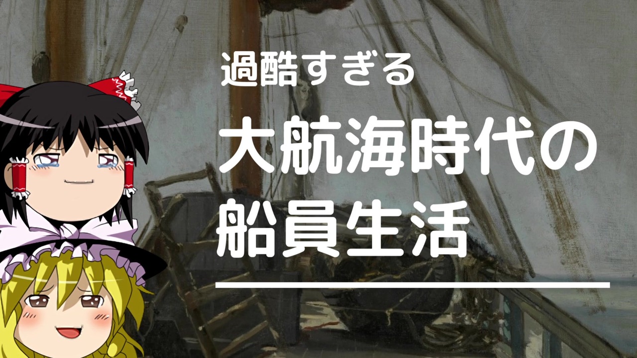 船に乗って大海原を駆け巡る…そんな夢もロマンもありゃしねえ。<br>大航海時代の船員は超絶過酷なブラック労働なのでした。<br><br>↓ゆっくり歴史グルメさんのチャンネル↓ごめんYouTubeなんだ<br><a href="https://www.youtube.com/channel/UCVR0Sy9yMAopS8aQHqabovA/featured" target="_blank" rel="noopener nofollow">https://www.youtube.com/channel/UCVR0Sy9yMAopS8aQHqabovA/featured</a><br><br>背景ゲーム画面:Age of Empires Ⅱ<br>Age of Empires Ⅱ © Microsoft Corporation. ゆっくりモンドちゃんねるの一部背景は、Microsoft の「ゲーム コンテンツ利用規約」 に基づき、Age of Empires Ⅱのアセットを使用して作成されたものであり、Microsoft との提携または Microsoft による承認を意味するものではありません。 <br>参照 Xbox ゲームコンテンツ利用規約 <a href="https://www.xbox.com/ja-JP/developers/rules" target="_blank" rel="noopener nofollow">https://www.xbox.com/ja-JP/developers/rules</a><br><br />━━━━━━━━━━━━━━━━━━━━━<br><br>この動画はクリエイティブ・コモンズ継承(CC-BY-SA)ライセンスの素材を使用して制作しています。(<a href="https://creativecommons.org/licenses/by-sa/4.0/)" target="_blank" rel="noopener nofollow">https://creativecommons.org/licenses/by-sa/4.0/)</a><br>規約に基づき、この動画もCC-BY-SA 4.0 のもとで公開します。<br><br>投稿者共通情報☆彡<br><br>BGM, SE:ニコニ・コモンズ様<br><a href="http://commons.nicovideo.jp/" target="_blank" rel="noopener nofollow">http://commons.nicovideo.jp/</a><br>魔王魂様<br><a href="https://maoudamashii.jokersounds.com/" target="_blank" rel="noopener nofollow">https://maoudamashii.jokersounds.com/</a><br>Audiostock様<br><a href="https://audiostock.jp/" target="_blank" rel="noopener nofollow">https://audiostock.jp/</a><br><br>立ち絵 霊夢・魔理沙(黒子式):nicotalk様<br><a href="http://www.nicotalk.com/charasozai.html" target="_blank" rel="noopener nofollow">http://www.nicotalk.com/charasozai.html</a><br><br>立ち絵 パトラ、マリー、アン、メアリ:ライフライフ様<br><a href="https://0801lifelife.tumblr.com/" target="_blank" rel="noopener nofollow">https://0801lifelife.tumblr.com/</a><br><br>使用ツール1:ゆっくりムービーメーカー4<br><a href="https://manjubox.net/ymm4/" target="_blank" rel="noopener nofollow">https://manjubox.net/ymm4/</a><br><br>使用ツール2:AviUtl<br><a href="http://spring-fragrance.mints.ne.jp/aviutl/" target="_blank" rel="noopener nofollow">http://spring-fragrance.mints.ne.jp/aviutl/</a><br><br>各時代の地図 : World History Maps & Timelines <br><a href="http://geacron.com/home-en/" target="_blank" rel="noopener nofollow">http://geacron.com/home-en/</a><br><br>ゆっくりボイスについて:AquesTalkライセンス取得済み<br><br>キャラクターボイス<br>アン・ボニー:羽ノ華(A.I.VOICE)<br>メアリ・リード:琴葉 葵(A.I.VOICE)<br>クレオパトラ:結月ゆかり(VOICEROID2)<br>マリー‐アントワネット:東北きりたん (VOICEROID EX)<br>その他キャラ:青山龍星(A.I.VOICE)、伊織弓鶴(A.I.VOICE2)、栗田まろん(A.I.VOICE)、宮舞モカ(VOICEPEAK)、フリモメン(VOICEPEAK)<br><br><br><br>その他フリー素材ご提供元の皆様に圧倒的感謝<br>