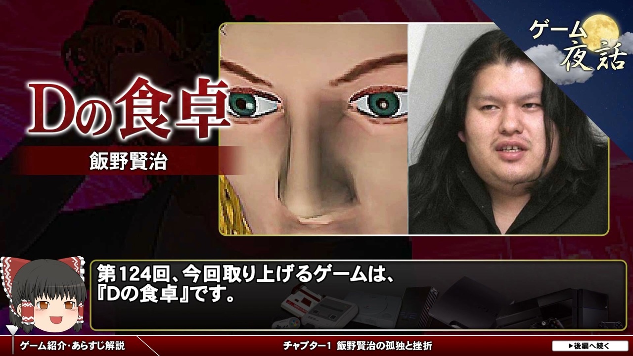 過去動画を宣伝・ギフトして下さった皆さん、ありがとうございましたm(__)m<br>毎回ひとつのゲームを取り上げ、3つのテーマから解説します。<br>【前編】は毎月1日・15日更新、【後編】は制作状況に応じて更新致します。<br><br><strong>原則、「前編」「後編」合わせて毎回約30分を予定しています。<br><br>▼第124回「Dの食卓」</strong><br>中編:<a href="https://www.nicovideo.jp/watch/sm40734780" class="watch">sm40734780</a><br>後編:<a href="https://www.nicovideo.jp/watch/sm40743740" class="watch">sm40743740</a><br><br>■youtubeはこちら <a href="https://youtu.be/G20WJtoN3MY" target="_blank" rel="noopener nofollow">https://youtu.be/G20WJtoN3MY</a><br>■ゲーム夜話ツイッター <a href="https://twitter.com/gameyawa" target="_blank" rel="noopener nofollow">https://twitter.com/gameyawa</a>