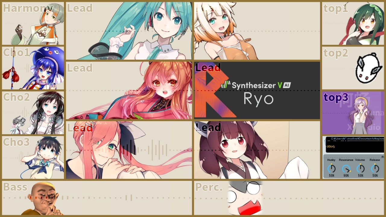 VOCALOIDとも歌ってみてますよね?<br><br>原曲:<a href="https://www.nicovideo.jp/watch/sm36898361" class="watch">sm36898361</a><br><br>リード<br>・初音ミク(PiaproStudio NT)<br>・ONE(CeVIO CS7)<br>・Sharpkey(稲荷)<br>・Ryo(SynthV AI)<br>・f00005j(Sinsy)<br>・東北きりたん(NEUTRINO)<br><br>ハモリ<br>・知声(VoiSona):最近CeVIO Proから改称したソフト<br><br>コーラス:息継ぎはない<br>・音街ウナ(VOCALOID)<br>・夏語遙(UTAU):最近AIシンガー化目指してクラファンしてる<br>・空詩音レミ(DeepVocal)<br><br>上物<br>・東北ずん子(歌うボイスロイド)<br>・Lona(UTSU):UTAUリスペクトソフト<br>・Luna(XStudio):中国のAI歌声合成ソフト。全編裏拍<br>・Female-F1(Aquestone):エフェクトマッシマシ<br><br>ベース<br>・ディレイラマ:人間らしさガン無視でオクターブ奏法やってる<br><br>ボイパ<br>・くろ州:ハンドクラップも口で出してる(この曲やるためだけに練習した)<br><br>イラスト<br>・ふるすろっとる!さん:<a href="https://seiga.nicovideo.jp/seiga/im7675431" target="_blank" rel="noopener">im7675431</a><br>・-翠-さん:<a href="https://seiga.nicovideo.jp/seiga/im7909843" target="_blank" rel="noopener">im7909843</a>