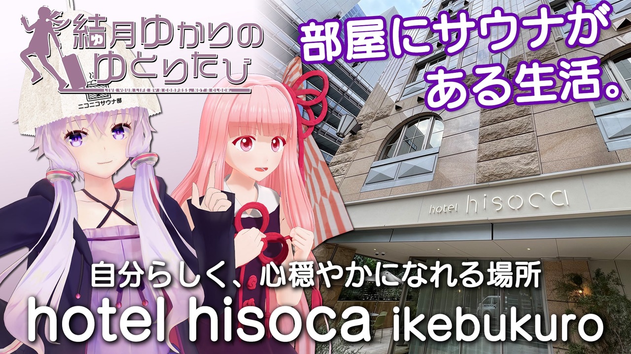 <span style="color: #9900ff; font-size: 24px;">こんなときだから、贅沢しよう。</span><br>ベホイミの無計画で気楽な一人旅の様子を観察する<strong>「MMD旅行バラエティ」第4回。</strong><br>今回は<strong>「hotel hisoca ikebukuro」</strong>。オープン前から予約して、6月にようやく泊まれました。<br>お安くない宿ですが、<strong>「サウナ動画投稿祭」</strong>で賞も取ったことだし、自分へのご褒美ということで。<br><span style="color: #ff00ff;">「いいね!」を押すと、役に立つような役に立たないような観光情報が見られます。</span><br><br><span style="color: #0000ff; font-size: 14px;"><strong><結月ゆかりのゆとりたび</strong></span><a href="https://www.nicovideo.jp/mylist/71080293" target="_blank" rel="noopener">mylist/71080293</a><span style="color: #0000ff; font-size: 14px;"><strong>></strong></span><br>前→富士山を眺めてととのう。「ホテルマウント富士」<a href="https://www.nicovideo.jp/watch/sm40179874" class="watch">sm40179874</a><br>次→ふにんがす×ニコニコ特別編。「KUDOCHI SAUNA」+α <a href="https://www.nicovideo.jp/watch/sm40927115" class="watch">sm40927115</a><br><span style="color: #0000ff;">スピンオフ</span><span style="color: #0000ff;"><strong>「結月ゆかりのまちあるき」</strong></span><span style="color: #0000ff;">→<a href="https://www.nicovideo.jp/mylist/75790185" target="_blank" rel="noopener">mylist/75790185</a></span><br><br><strong>制作:ベホイミProject(<a href="https://www.nicovideo.jp/mylist/27336" target="_blank" rel="noopener">mylist/27336</a>)</strong><br><span style="color: #262626;">Twitter:</span><a href="https://twitter.com/BehoimiP" target="_blank" rel="noopener nofollow">https://twitter.com/BehoimiP</a><br>YouTube:<a href="https://www.youtube.com/c/TasMarisa" target="_blank" rel="noopener nofollow">https://www.youtube.com/c/TasMarisa</a><br>欲しい物:<a href="https://www.amazon.jp/hz/wishlist/ls/22MGTQ3BVV39B?ref_=wl_share" target="_blank" rel="noopener nofollow">https://www.amazon.jp/hz/wishlist/ls/22MGTQ3BVV39B?ref_=wl_share</a>