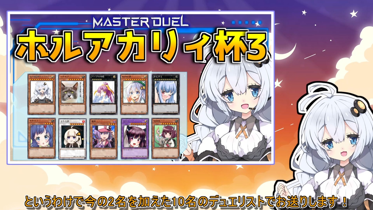 ー現代遊戯王が体感できる神ゲー「遊戯王マスターデュエル」の実況動画ー<br>☆三幻神を束ねることで召喚できる「光の創造神ホルアクティ」を求め続ける紲星あかりがマスターデュエルにもやってきた!!!<br><br>☆総勢8名のボイロ関係者がしのぎを削るトーナメント形式の大会!!<br>大会名は私が適当に提案したら採用されちゃったのだ(*'▽')<br><br>☆参加者(敬称略)<br>・四輝:<a href="https://twitter.com/shiki_yokosuka" target="_blank" rel="noopener nofollow">https://twitter.com/shiki_yokosuka</a><br>・KUKU猫:<a href="https://twitter.com/96cat0909" target="_blank" rel="noopener nofollow">https://twitter.com/96cat0909</a><br>・ぱたー:<a href="https://twitter.com/paterDM" target="_blank" rel="noopener nofollow">https://twitter.com/paterDM</a><br>・パープル中佐:<a href="https://twitter.com/motoyasiki2" target="_blank" rel="noopener nofollow">https://twitter.com/motoyasiki2</a><br>・薙派:<a href="https://twitter.com/arutana" target="_blank" rel="noopener nofollow">https://twitter.com/arutana</a><br>・よむ太郎:<a href="https://twitter.com/Sacchaso11000" target="_blank" rel="noopener nofollow">https://twitter.com/Sacchaso11000</a><br>・narix:<a href="https://twitter.com/narixnarix" target="_blank" rel="noopener nofollow">https://twitter.com/narixnarix</a><br>・かんすと:<a href="https://twitter.com/kansuto_game" target="_blank" rel="noopener nofollow">https://twitter.com/kansuto_game</a><br>・ナカトミ:<a href="https://twitter.com/voiro_nakatomi" target="_blank" rel="noopener nofollow">https://twitter.com/voiro_nakatomi</a><br>・パワルド:<a href="https://twitter.com/powerd5humohumo" target="_blank" rel="noopener nofollow">https://twitter.com/powerd5humohumo</a><br><br>マイリスト→<a href="https://www.nicovideo.jp/mylist/68429101" target="_blank" rel="noopener">mylist/68429101</a><br><br>☆素材元様☆<br>立ち絵<br> 紲星あかり:みるくぱんだ 様<br> ついなちゃん:akihiyo 様<br /><br><span style="color: #434343; font-size: 10px;">ついったー:<a href="https://twitter.com/shiki_yokosuka" target="_blank" rel="noopener nofollow">https://twitter.com/shiki_yokosuka</a></span>