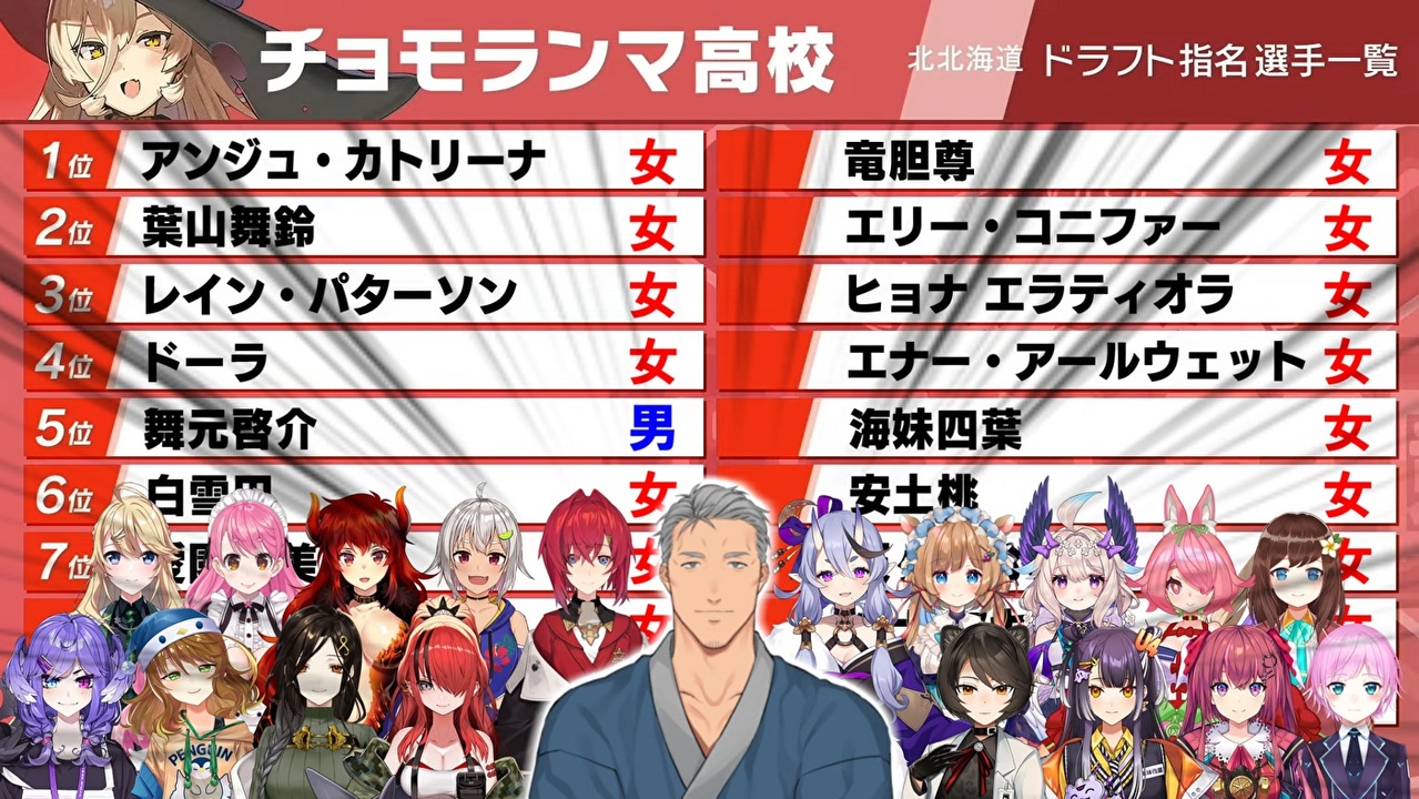 チョモランマ高校は女子高だった!?<br><br>本家参考動画<br>・にじさんじ公式<br>にじさんじ甲子園2022 ドラフト会議【 #にじさんじ甲子園 】<br><a href="https://youtu.be/6vF87rFYmR4" target="_blank" rel="noopener nofollow">https://youtu.be/6vF87rFYmR4</a><br><br>参考元チャンネル&Twitter<br>・ニュイ・ソシエール<br><a href="https://www.youtube.com/channel/UCUc8GZfFxtmk7ZwSO7ccQ0g" target="_blank" rel="noopener nofollow">https://www.youtube.com/channel/UCUc8GZfFxtmk7ZwSO7ccQ0g</a><br>・舞元啓介<br><a href="https://www.youtube.com/channel/UCJubINhCcFXlsBwnHp0wl_g" target="_blank" rel="noopener nofollow">https://www.youtube.com/channel/UCJubINhCcFXlsBwnHp0wl_g</a><br>・リゼ・ヘルエスタ<br><a href="https://www.youtube.com/channel/UCZ1xuCK1kNmn5RzPYIZop3w" target="_blank" rel="noopener nofollow">https://www.youtube.com/channel/UCZ1xuCK1kNmn5RzPYIZop3w</a><br>・笹木咲<br><a href="https://www.youtube.com/channel/UCoztvTULBYd3WmStqYeoHcA" target="_blank" rel="noopener nofollow">https://www.youtube.com/channel/UCoztvTULBYd3WmStqYeoHcA</a><br>・椎名唯華<br><a href="https://www.youtube.com/channel/UC_4tXjqecqox5Uc05ncxpxg" target="_blank" rel="noopener nofollow">https://www.youtube.com/channel/UC_4tXjqecqox5Uc05ncxpxg</a><br>・加賀美ハヤト<br><a href="https://www.youtube.com/channel/UCmovZ2th3Sqpd00F5RdeigQ" target="_blank" rel="noopener nofollow">https://www.youtube.com/channel/UCmovZ2th3Sqpd00F5RdeigQ</a><br>・レオス・ヴィンセント<br><a href="https://www.youtube.com/channel/UC-6rZgmxZSIbq786j3RD5ow" target="_blank" rel="noopener nofollow">https://www.youtube.com/channel/UC-6rZgmxZSIbq786j3RD5ow</a><br>・イブラヒム<br><a href="https://www.youtube.com/channel/UCmZ1Rbthn-6Jm_qOGjYsh5A" target="_blank" rel="noopener nofollow">https://www.youtube.com/channel/UCmZ1Rbthn-6Jm_qOGjYsh5A</a><br>・葛葉<br><a href="https://www.youtube.com/channel/UCSFCh5NL4qXrAy9u-u2lX3g" target="_blank" rel="noopener nofollow">https://www.youtube.com/channel/UCSFCh5NL4qXrAy9u-u2lX3g</a><br>・天開司<br><a href="https://www.youtube.com/channel/UCZYyhgoV314CM14zBD6vd4A" target="_blank" rel="noopener nofollow">https://www.youtube.com/channel/UCZYyhgoV314CM14zBD6vd4A</a><br>・にじさんじ<br><a href="https://www.youtube.com/channel/UCX7YkU9nEeaoZbkVLVajcMg" target="_blank" rel="noopener nofollow">https://www.youtube.com/channel/UCX7YkU9nEeaoZbkVLVajcMg</a><br><br>ニコニコのダイコンマンリスト<br>「バーチャルYouTuberシリーズ」↓<br><a href="https://www.nicovideo.jp/mylist/62551838" target="_blank" rel="noopener">mylist/62551838</a><br>「バーチャルYouTuberシリーズ2」↓<br><a href="https://www.nicovideo.jp/mylist/67858437" target="_blank" rel="noopener">mylist/67858437</a><br>「バーチャルYouTuberシリーズ3」↓<br><a href="https://www.nicovideo.jp/mylist/71340675" target="_blank" rel="noopener">mylist/71340675</a><br><br>ダイコンマンのTwitter<br><a href="https://twitter.com/Daikon_Man_V" target="_blank" rel="noopener nofollow">https://twitter.com/Daikon_Man_V</a>