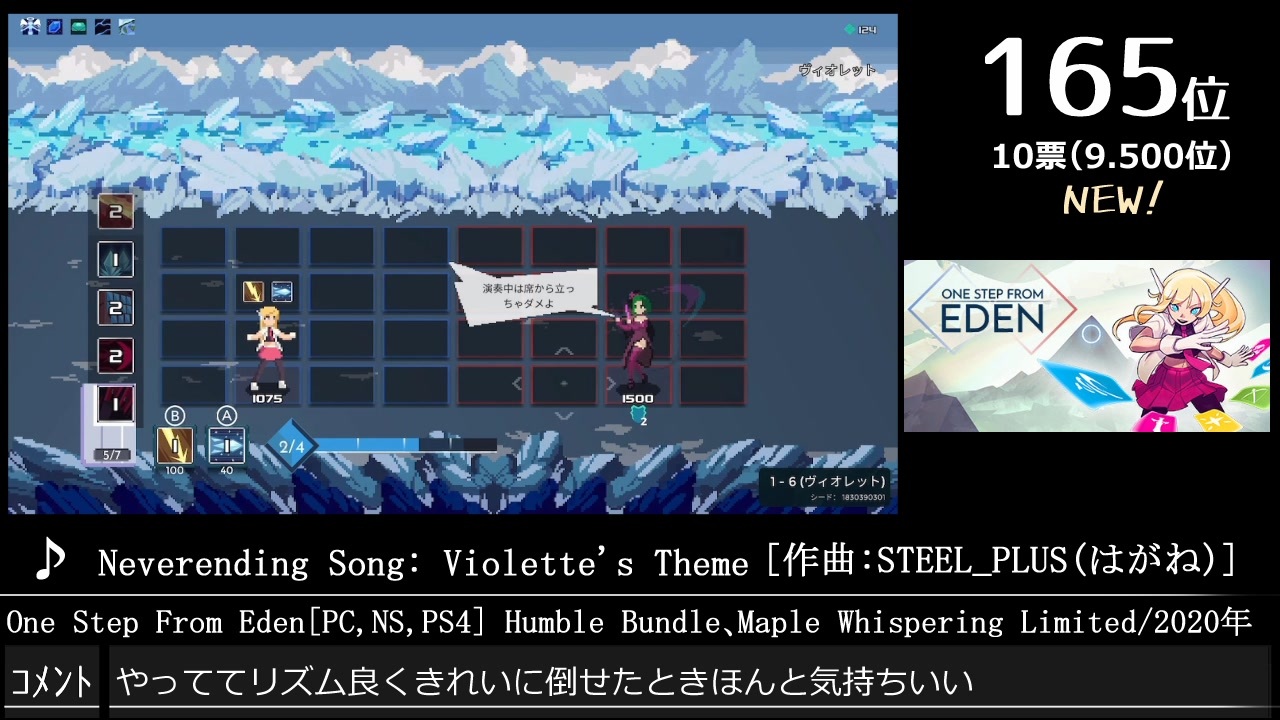1.22…で頂いたやつに合わせてみたり<br><br><s>第15回、投票受付中!↓※5月1日~8月1日迄<br><a href="https://jbbs.shitaraba.net/bbs/read.cgi/music/25545/1651330742/" target="_blank" rel="noopener nofollow">https://jbbs.shitaraba.net/bbs/read.cgi/music/25545/1651330742/</a></s><br>---------------------------------<br><s>スクリーンショット大募集!<br>詳しくは下記投稿フォームのご案内やスクショ状況スプレッドシート等をご確認下さい<br>↓<br><a href="https://ws.formzu.net/dist/S9500351/" target="_blank" rel="noopener nofollow">https://ws.formzu.net/dist/S9500351/</a></s><br><br>投票結果はこちら<br>↓<br><a href="https://w.atwiki.jp/gamemusicbest100/pages/9526.html" target="_blank" rel="noopener nofollow">https://w.atwiki.jp/gamemusicbest100/pages/9526.html</a><br><br>ご質問等ある際はこちらのページへコメント下さいませ<br>↓<br><a href="https://arutoneriko2.hatenablog.com/" target="_blank" rel="noopener nofollow">https://arutoneriko2.hatenablog.com/</a><br>---------------------------------<br><a href="https://www.nicovideo.jp/watch/sm40722621" class="watch">sm40722621</a>←Part34|今回|Part36→<a href="https://www.nicovideo.jp/watch/sm40766946" class="watch">sm40766946</a><br> 3票ランク外new→<a href="https://www.nicovideo.jp/watch/sm40535893" class="watch">sm40535893</a><br> 1位1票①→<a href="https://www.nicovideo.jp/watch/sm40454247" class="watch">sm40454247</a> <a href="https://www.nicovideo.jp/mylist/50993049" target="_blank" rel="noopener">mylist/50993049</a>