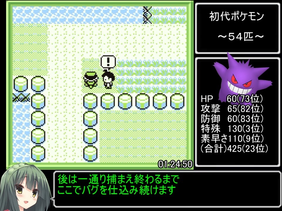 ・レギュレーション<br> さいしょからはじめるで計測スタート<br> バグ有・任意コードなし<br> バグで図鑑が埋まっても関係なく151匹集める<br> 151匹集めてENDで終了<br><br>前記録→<a href="https://www.nicovideo.jp/watch/sm40099624" class="watch">sm40099624</a><br><br>広告チケットの為に頑張ったぞ!<br>次回も早めに頑張る<br><br>次→<a href="https://www.nicovideo.jp/watch/sm40786378" class="watch">sm40786378</a><br>前→<a href="https://www.nicovideo.jp/watch/sm40718187" class="watch">sm40718187</a><br><br>今まで投稿した動画のPart1→<a href="https://www.nicovideo.jp/mylist/27845848" target="_blank" rel="noopener">mylist/27845848</a><br>普段やってるポケモンバグシリーズ→<a href="https://www.nicovideo.jp/series/288049" target="_blank" rel="noopener">series/288049</a><br>ツイッター→<a href="https://twitter.com/sehuraito196" target="_blank" rel="noopener nofollow">https://twitter.com/sehuraito196</a>