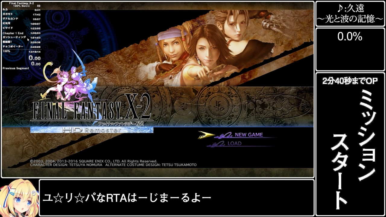1年…待たせたからな 次は X2の時代だ!<br><br>【ゲーム概要】<br>・FINAL FANTASY X-2 (ファイナルファンタジー10-2)<br>・PC版 Steam<br>・100%<br>・No Creature Creator (クリーチャークリエイト禁止)<br>・計測区間:New Game選択~終了画面100%表示<br>・セーブ機能使用<br>・バグ技禁止<br>・チートコマンド禁止 (倍速機能など)<br><br>【リンク】<br>Part1:こ↑こ↓<br><br>マイリスト:<a href="https://www.nicovideo.jp/mylist/73452210" target="_blank" rel="noopener nofollow">https://www.nicovideo.jp/mylist/73452210</a><br><br>YouTube:<a href="https://youtu.be/-OzZL6smtAE" target="_blank" rel="noopener nofollow">https://youtu.be/-OzZL6smtAE</a><br><br>未編集ノーカーット超大作:<a href="https://youtu.be/xeSsCrFZYeg" target="_blank" rel="noopener nofollow">https://youtu.be/xeSsCrFZYeg</a><br><br>Twitter:<a href="https://twitter.com/lunearcenciel" target="_blank" rel="noopener nofollow">https://twitter.com/lunearcenciel</a><br><br>Copyright (C) 2001, 2003, 2019 SQUARE ENIX CO., LTD. All Rights Reserved.