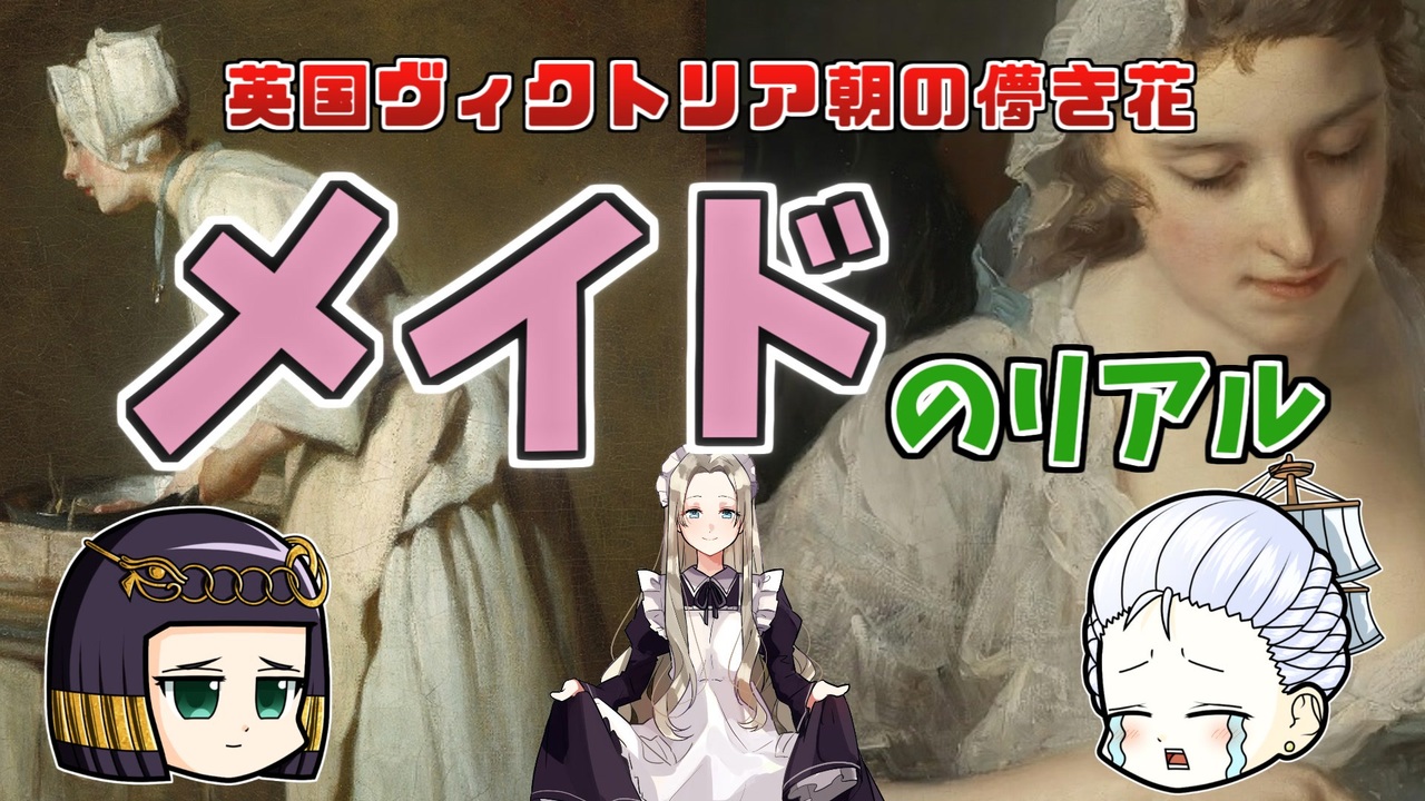 マリーちゃんは楽して稼げそうなバイトを見つけたようです。<br>カフェじゃないメイドについての解説です<br><br>ファンアート:ゆみりん様<br><a href="https://linktr.ee/yumirin791" target="_blank" rel="noopener nofollow">https://linktr.ee/yumirin791</a><br><br>今回の参考文献:<br>池上良太(2017)『図解 メイド』新紀元社<br><br>久我真樹(2013)『英国メイドの世界 エッセンシャル版』講談社<br><br>久我真樹(2011)『英国メイドがいた時代』<br />━━━━━━━━━━━━━━━━━━━━━<br><br>この動画はクリエイティブ・コモンズ継承(CC-BY-SA)ライセンスの素材を使用して制作しています。(<a href="https://creativecommons.org/licenses/by-sa/4.0/)" target="_blank" rel="noopener nofollow">https://creativecommons.org/licenses/by-sa/4.0/)</a><br>規約に基づき、この動画もCC-BY-SA 4.0 のもとで公開します。<br><br>投稿者共通情報☆彡<br><br>BGM, SE:ニコニ・コモンズ様<br><a href="http://commons.nicovideo.jp/" target="_blank" rel="noopener nofollow">http://commons.nicovideo.jp/</a><br>魔王魂様<br><a href="https://maoudamashii.jokersounds.com/" target="_blank" rel="noopener nofollow">https://maoudamashii.jokersounds.com/</a><br>Audiostock様<br><a href="https://audiostock.jp/" target="_blank" rel="noopener nofollow">https://audiostock.jp/</a><br><br>立ち絵 霊夢・魔理沙(黒子式):nicotalk様<br><a href="http://www.nicotalk.com/charasozai.html" target="_blank" rel="noopener nofollow">http://www.nicotalk.com/charasozai.html</a><br><br>立ち絵 パトラ、マリー、アン、メアリ:ライフライフ様<br><a href="https://0801lifelife.tumblr.com/" target="_blank" rel="noopener nofollow">https://0801lifelife.tumblr.com/</a><br><br>使用ツール1:ゆっくりムービーメーカー4<br><a href="https://manjubox.net/ymm4/" target="_blank" rel="noopener nofollow">https://manjubox.net/ymm4/</a><br><br>使用ツール2:AviUtl<br><a href="http://spring-fragrance.mints.ne.jp/aviutl/" target="_blank" rel="noopener nofollow">http://spring-fragrance.mints.ne.jp/aviutl/</a><br><br>各時代の地図 : World History Maps & Timelines <br><a href="http://geacron.com/home-en/" target="_blank" rel="noopener nofollow">http://geacron.com/home-en/</a><br><br>ゆっくりボイスについて:AquesTalkライセンス取得済み<br><br>キャラクターボイス<br>アン・ボニー:羽ノ華(A.I.VOICE)<br>メアリ・リード:琴葉 葵(A.I.VOICE)<br>クレオパトラ:結月ゆかり(VOICEROID2)<br>マリー‐アントワネット:東北きりたん (VOICEROID EX)<br>その他キャラ:青山龍星(A.I.VOICE)、伊織弓鶴(A.I.VOICE2)、栗田まろん(A.I.VOICE)、宮舞モカ(VOICEPEAK)、フリモメン(VOICEPEAK)<br><br><br><br>その他フリー素材ご提供元の皆様に圧倒的感謝<br>