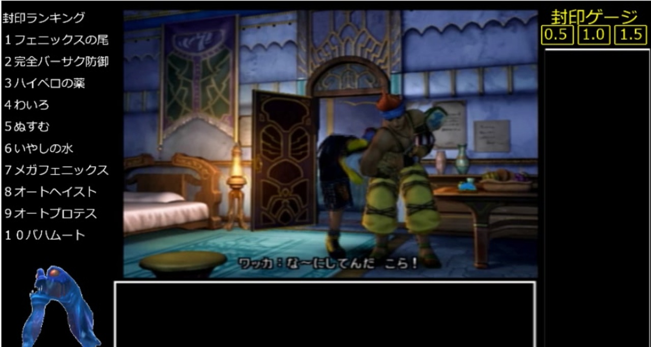 大暴れ<br><br>縛り内容<br>・レベルが1.5上がる度にランダムでアイテム・召喚獣・トリガーコマンド・オーバードライブ技・アビリティ(白黒魔法使う調合等の大枠以外)が1つ封印される。<br> (武器が全封印されたキャラは物理攻撃禁止)<br>・初めて探索する区間(セーブスフィア間)は逃走禁止。ボスは試行回数殴りOK。<br>・全滅時、経験値(AP)を再現。<br>・戦闘終了時、全員がAPを取得する(APありの戦闘のみ)。無理な場合、1人死亡につき3封印。<br><br>(封印対象物について)<br>武防具アビリティ「APなし」・「エンカウントなし」・アビリティ「とんずら」「わいろ(稼ぎ以外での使用)」は禁止。<br>武防具は改造前の名称を封印対象とする。改造後の名称の使用可否は、改造前に準ずる。<br> ex)アーロンの武器の場合、スロット数の異なるベース武器×3&捕獲武器&七曜の武器の5種類となる。<br> スフィアは基本パラメータUP4種とキースフィアのみ、封印されてもスフィア盤での使用は可。<br><br>リスペクト元(封印王) → <a href="https://www.nicovideo.jp/watch/sm4569128" class="watch">sm4569128</a><br><br>過去シリーズ → <a href="https://www.nicovideo.jp/mylist/71307387" target="_blank" rel="noopener">mylist/71307387</a><br>告知 → <a href="https://twitter.com/mazoriahosh" target="_blank" rel="noopener nofollow">https://twitter.com/mazoriahosh</a><br>youtube → <a href="https://www.youtube.com/watch?v=qskHDlLNypY" target="_blank" rel="noopener nofollow">https://www.youtube.com/watch?v=qskHDlLNypY</a>