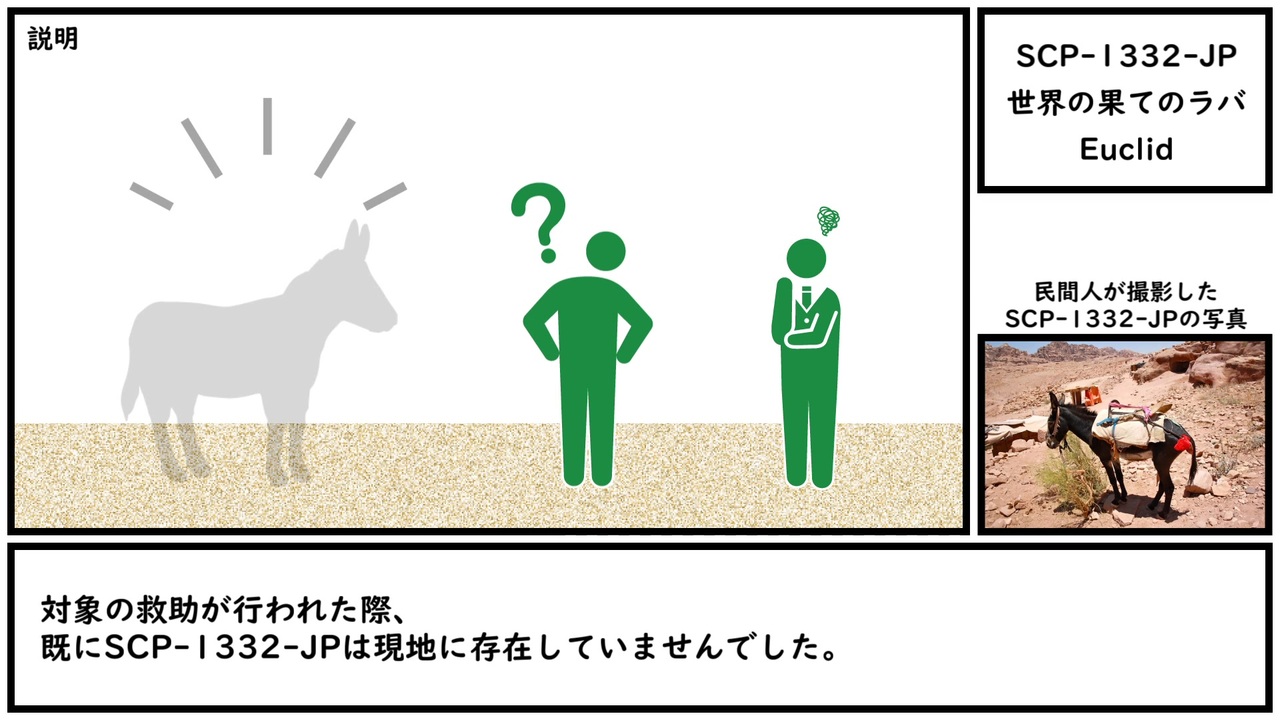 旅人に幸福とごちそうあれ。<br><br>本家記事 <a href="http://scp-jp.wikidot.com/scp-1332-jp" target="_blank" rel="noopener nofollow">http://scp-jp.wikidot.com/scp-1332-jp</a><br>作者 roneatosu<br>SCP財団 <a href="http://scp-jp.wikidot.com" target="_blank" rel="noopener nofollow">http://scp-jp.wikidot.com</a><br>過去の動画はこちら <a href="https://www.nicovideo.jp/mylist/67620202" target="_blank" rel="noopener">mylist/67620202</a><br>CC-BY-SA 3.0