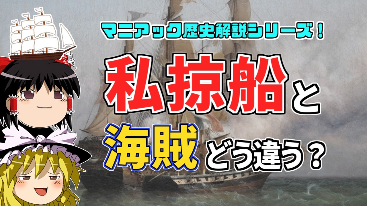 私掠船?海賊のことでしょ?いやそもそも私掠って何?<br>っていう感じでよくわからん私掠船についての解説です。<br><br>背景ゲーム画面:Age of Empires Ⅱ<br>Age of Empires Ⅱ © Microsoft Corporation. ゆっくりモンドちゃんねるの一部背景は、Microsoft の「ゲーム コンテンツ利用規約」 に基づき、Age of Empires Ⅱのアセットを使用して作成されたものであり、Microsoft との提携または Microsoft による承認を意味するものではありません。 <br>参照 Xbox ゲームコンテンツ利用規約 <a href="https://www.xbox.com/ja-JP/developers/rules" target="_blank" rel="noopener nofollow">https://www.xbox.com/ja-JP/developers/rules</a><br><br />━━━━━━━━━━━━━━━━━━━━━<br><br>この動画はクリエイティブ・コモンズ継承(CC-BY-SA)ライセンスの素材を使用して制作しています。(<a href="https://creativecommons.org/licenses/by-sa/4.0/)" target="_blank" rel="noopener nofollow">https://creativecommons.org/licenses/by-sa/4.0/)</a><br>規約に基づき、この動画もCC-BY-SA 4.0 のもとで公開します。<br><br>投稿者共通情報☆彡<br><br>BGM, SE:ニコニ・コモンズ様<br><a href="http://commons.nicovideo.jp/" target="_blank" rel="noopener nofollow">http://commons.nicovideo.jp/</a><br>魔王魂様<br><a href="https://maoudamashii.jokersounds.com/" target="_blank" rel="noopener nofollow">https://maoudamashii.jokersounds.com/</a><br>Audiostock様<br><a href="https://audiostock.jp/" target="_blank" rel="noopener nofollow">https://audiostock.jp/</a><br><br>立ち絵 霊夢・魔理沙(黒子式):nicotalk様<br><a href="http://www.nicotalk.com/charasozai.html" target="_blank" rel="noopener nofollow">http://www.nicotalk.com/charasozai.html</a><br><br>立ち絵 パトラ、マリー、アン、メアリ:ライフライフ様<br><a href="https://0801lifelife.tumblr.com/" target="_blank" rel="noopener nofollow">https://0801lifelife.tumblr.com/</a><br><br>使用ツール1:ゆっくりムービーメーカー4<br><a href="https://manjubox.net/ymm4/" target="_blank" rel="noopener nofollow">https://manjubox.net/ymm4/</a><br><br>使用ツール2:AviUtl<br><a href="http://spring-fragrance.mints.ne.jp/aviutl/" target="_blank" rel="noopener nofollow">http://spring-fragrance.mints.ne.jp/aviutl/</a><br><br>各時代の地図 : World History Maps & Timelines <br><a href="http://geacron.com/home-en/" target="_blank" rel="noopener nofollow">http://geacron.com/home-en/</a><br><br>ゆっくりボイスについて:AquesTalkライセンス取得済み<br><br>キャラクターボイス<br>アン・ボニー:羽ノ華(A.I.VOICE)<br>メアリ・リード:琴葉 葵(A.I.VOICE)<br>クレオパトラ:結月ゆかり(VOICEROID2)<br>マリー‐アントワネット:東北きりたん (VOICEROID EX)<br>その他キャラ:青山龍星(A.I.VOICE)、伊織弓鶴(A.I.VOICE2)、栗田まろん(A.I.VOICE)、宮舞モカ(VOICEPEAK)、フリモメン(VOICEPEAK)<br><br><br><br>その他フリー素材ご提供元の皆様に圧倒的感謝<br>