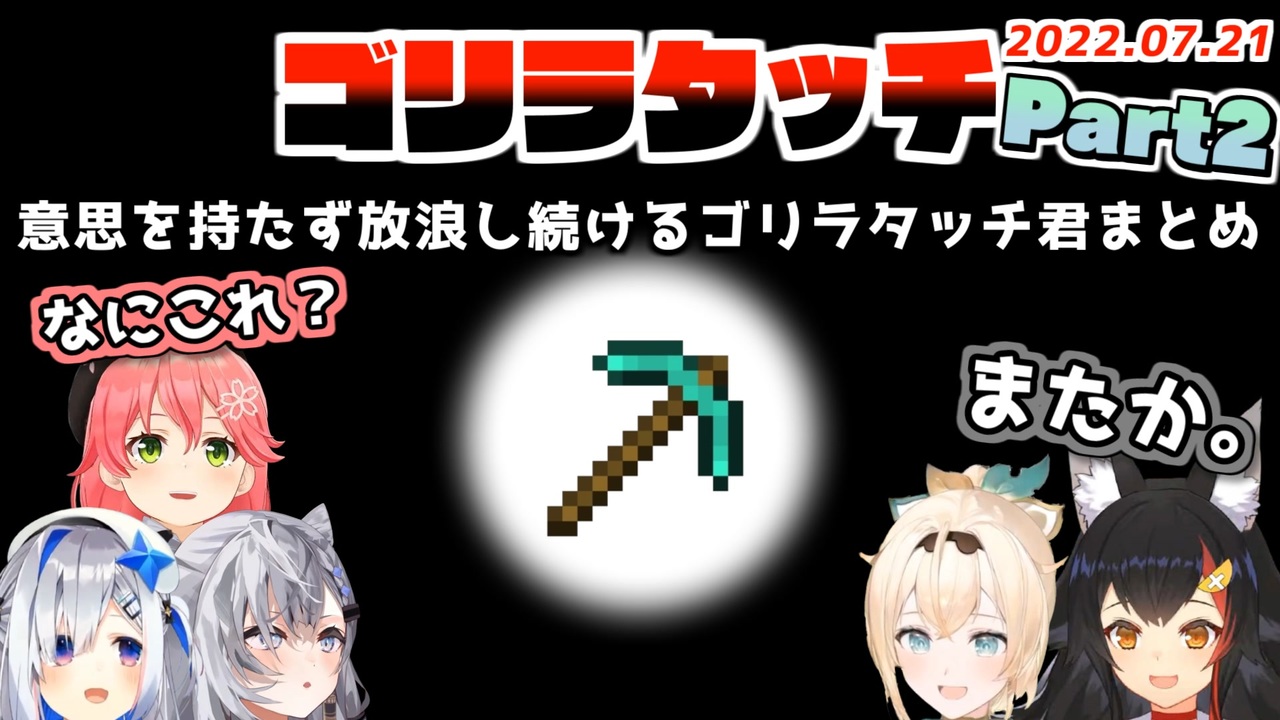 ひたすら不憫<br><br><a href="#" class="seekTime" data-seekTime="00:00" onclick="seekNicoPlayer('#00:00'); return false;">#00:00</a> 発端<br><a href="#" class="seekTime" data-seekTime="00:58" onclick="seekNicoPlayer('#00:58'); return false;">#00:58</a> これまでのゴリラタッチ君おさらい<br><a href="#" class="seekTime" data-seekTime="02:22" onclick="seekNicoPlayer('#02:22'); return false;">#02:22</a> 答え<br><br>元動画様はこちら<br>【Minecraft】落とすぞ!地獄GOGOコース【天音かなた/ホロライブ】 2020/11/17<br><a href="https://youtu.be/7TA_VPCh7K0?t=3472" target="_blank" rel="noopener nofollow">https://youtu.be/7TA_VPCh7K0?t=3472</a><br><br>【#ホロ鯖ENポータルリレー / #HOLOserverPORTAL】説明枠!!!! 【天音かなた/ホロライブ】 2021/08/21<br><a href="https://youtu.be/4jcQHAK3P8c?t=1630" target="_blank" rel="noopener nofollow">https://youtu.be/4jcQHAK3P8c?t=1630</a><br><br>【 #ホロ鯖ENポータルリレー 】大神ミオ視点!ENとJPをつなぐ・・ってコトォ?!【 #HOLOserverPORTAL 】 2021/08/21<br><a href="https://youtu.be/x1EZYh8aGwA" target="_blank" rel="noopener nofollow">https://youtu.be/x1EZYh8aGwA</a><br><br>【マイクラ】お店作り!パンプキンパイcafe作るよ~【ホロライブ/大神ミオ】 2021/10/09<br><a href="https://youtu.be/bz2DvqTmOms" target="_blank" rel="noopener nofollow">https://youtu.be/bz2DvqTmOms</a><br><br>【壺並走】かなトワ勝負!!ラストに重大告知あり!!【天音かなた/ホロライブ】 2021/10/13<br><a href="https://youtu.be/Tc3jcBAncUQ" target="_blank" rel="noopener nofollow">https://youtu.be/Tc3jcBAncUQ</a><br><br>【マイクラ】IDとJPをつなぐポータルを作る準備!【ホロライブ/大神ミオ】 2022/07/16<br><a href="https://youtu.be/xnLzkgFWeek" target="_blank" rel="noopener nofollow">https://youtu.be/xnLzkgFWeek</a><br><br>【マイクラ】IDとJPをつなぐポータル作りリレー!まずは土台を作る!【ホロライブ/大神ミオ】 2022/07/17<br><a href="https://youtu.be/lSTFM19-a_s" target="_blank" rel="noopener nofollow">https://youtu.be/lSTFM19-a_s</a><br><br>【マイクラ】IDとJPをつなぐポータル開通!IDメンバーお迎えします【ホロライブ/大神ミオ】 2022/07/17<br><a href="https://youtu.be/P_-DpH10npM" target="_blank" rel="noopener nofollow">https://youtu.be/P_-DpH10npM</a><br><br>【 マイクラ 】もうこりゃだめや!マイクラするしかにぇ~!【ホロライブ/さくらみこ】 2022/07/20<br><a href="https://youtu.be/VfSDZpAZsFs" target="_blank" rel="noopener nofollow">https://youtu.be/VfSDZpAZsFs</a><br><br>【Minecraft】念願の古代都市!!探索する【風真いろは/ホロライブ6期生】 2022/07/20<br><a href="https://youtu.be/JY3-CyZnEAQ" target="_blank" rel="noopener nofollow">https://youtu.be/JY3-CyZnEAQ</a><br><br>Exploring the Hololive JP Server in Minecraft ! 2022/07/20<br><a href="https://youtu.be/hR33q9JOzv0" target="_blank" rel="noopener nofollow">https://youtu.be/hR33q9JOzv0</a><br /><span style="color: #b7b7b7; font-size: 10px;">ホロライブ切り抜き/なめたけ <a href="https://t.co/CBwJLnYR2c" target="_blank" rel="noopener nofollow">https://t.co/CBwJLnYR2c</a></span>