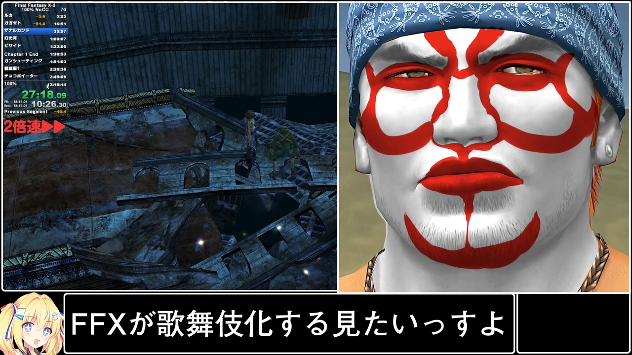 はい!じゃあ歌舞伎の練習!<br><br>【ゲーム概要】<br>・FINAL FANTASY X-2 (ファイナルファンタジー10-2)<br>・PC版 Steam<br>・100%<br>・No Creature Creator (クリーチャークリエイト禁止)<br>・計測区間:New Game選択~終了画面100%表示<br>・セーブ機能使用<br>・バグ技禁止<br>・チートコマンド禁止 (倍速機能など)<br><br>【リンク】<br>Part1:<a href="https://www.nicovideo.jp/watch/sm40776052" target="_blank" rel="noopener nofollow">https://www.nicovideo.jp/watch/sm40776052</a><br><br>マイリスト:<a href="https://www.nicovideo.jp/mylist/73452210" target="_blank" rel="noopener nofollow">https://www.nicovideo.jp/mylist/73452210</a><br><br>YouTube:<a href="https://youtu.be/AMLjRv3yet4" target="_blank" rel="noopener nofollow">https://youtu.be/AMLjRv3yet4</a><br><br>未編集ノーカーット超大作:<a href="https://youtu.be/xeSsCrFZYeg" target="_blank" rel="noopener nofollow">https://youtu.be/xeSsCrFZYeg</a><br><br>Twitter:<a href="https://twitter.com/lunearcenciel" target="_blank" rel="noopener nofollow">https://twitter.com/lunearcenciel</a><br><br>Copyright (C) 2001, 2003, 2019 SQUARE ENIX CO., LTD. All Rights Reserved.