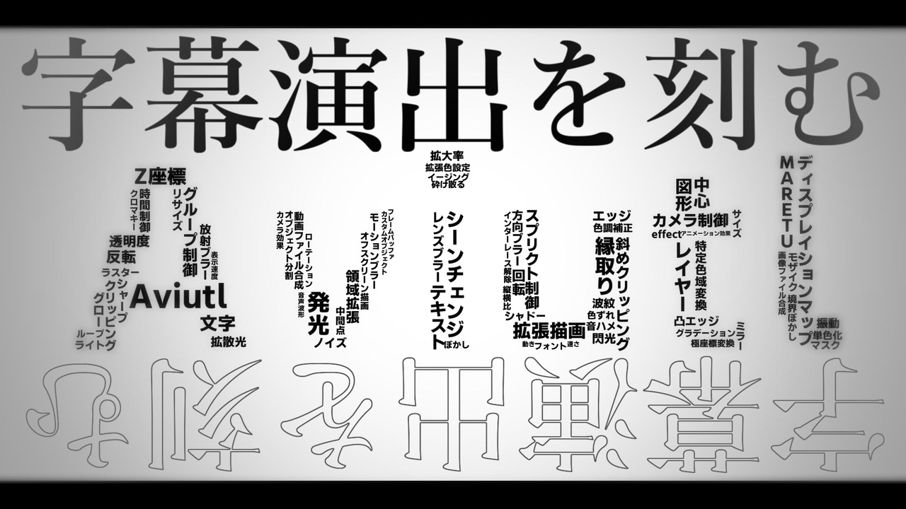 【2022/10/21 追記】<br><span style="color: #cc0000; font-size: 16px;"><strong><u>解説編動画完成いたしました</u></strong></span>。こちらになります。<span style="color: #ff0000;"><strong><u>aupファイルのオマケ付き</u></strong></span><br><a href="https://www.nicovideo.jp/watch/sm41263032" target="_blank" rel="noopener nofollow">https://www.nicovideo.jp/watch/sm41263032</a><br><br>【2022/10/11 追記】<br><span style="color: #980000; font-size: 18px;"><strong><u>pixivFANBOXにて軽く解説作りました</u></strong></span><span style="font-size: 18px;">。</span>そのうち解説編動画も作る予定です<br><a href="https://ralt2905.fanbox.cc/posts/4578064" target="_blank" rel="noopener nofollow">https://ralt2905.fanbox.cc/posts/4578064</a><br>________________________________________<br><span style="color: #ff0000; font-size: 24px;"><strong>完全にこっちにあげるの忘れてたわ</strong></span><br>まぁAviutlでやる字幕演出ですよーっと<br>演出参考にしたい方はサイト使ってDLして見てくれ読ませる気無いから<br>主にMADとかPV向けの演出方法だから参考になるかどうかは知らん<br>細かい設定知りたいよって声が多かったら別でこんな感じにやってたって動画出すと思う<br><br>私<strong>Vtuber</strong>だけど<strong>動画編集してっからな?</strong><br>__________________________________________<br><br>【2022/10/01 追記】<br>なーんかニコニコのトップページに紹介されたそうな……<br>私Youtubeメインだから一切気が付かなかったんだけど……びっくり…<br>【2022/10/04 追記】<br>10000再生突破ありがとうございます。この動画…需要あったんやな……