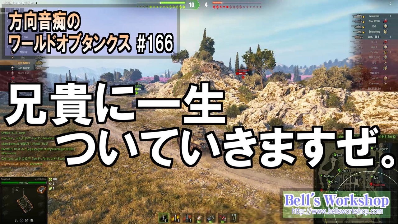 近距離で見つからないT37と、兄貴に一生ついてくブルドッグです。<br>前:<a href="https://www.nicovideo.jp/watch/sm40598233" class="watch">sm40598233</a> 次:<a href="https://www.nicovideo.jp/watch/sm41018260" class="watch">sm41018260</a> マイリスト:<a href="https://www.nicovideo.jp/mylist/44599831" target="_blank" rel="noopener">mylist/44599831</a><br>※Part166裏話:<a href="http://bellsworkshop.com/wot-part166/" target="_blank" rel="noopener nofollow">http://bellsworkshop.com/wot-part166/</a><br>ブログ<br> <a href="http://www.bellsworkshop.com/" target="_blank" rel="noopener nofollow">http://www.bellsworkshop.com/</a><br><br>Youtubeチャンネル<br> <a href="http://www.youtube.com/user/bellsworkshop" target="_blank" rel="noopener nofollow">http://www.youtube.com/user/bellsworkshop</a><br><br>Music:purple planet royalty free music <a href="http://www.purple-planet.com/" target="_blank" rel="noopener nofollow">http://www.purple-planet.com/</a><br>Sound:On-Jin ~音人~ <a href="http://on-jin.com/" target="_blank" rel="noopener nofollow">http://on-jin.com/</a><br><br>[この動画はウォーゲーミングジャパン株式会社が権利を所有する著作物を利用しております。© Wargaming.net]