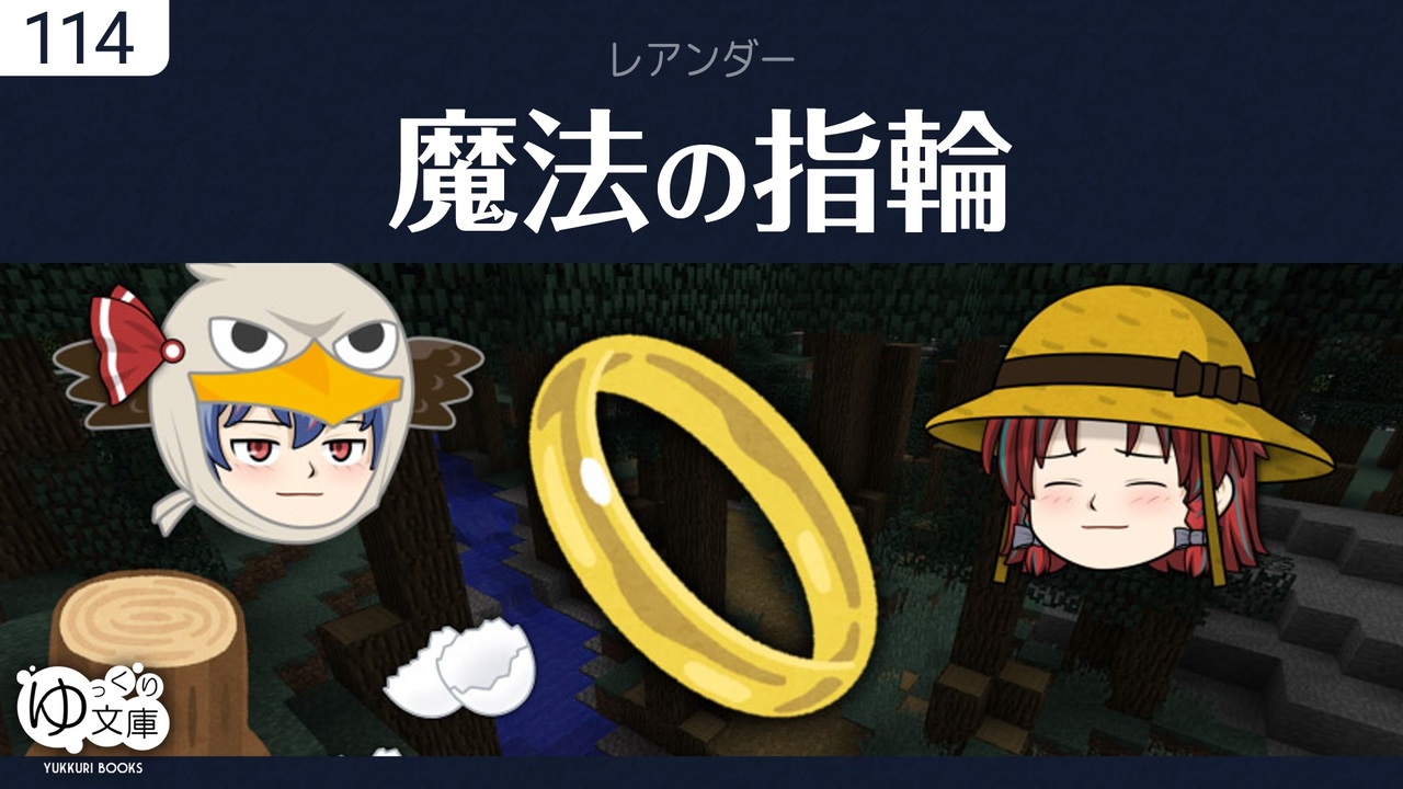 <span style="color: red;"><strong>114 本物の魔法────</strong></span><br>ひょんなことから、若い農夫が魔法の指輪を手に入れた。どんな願いも、1つだけ叶えられる。欲しいものはいっぱいあるし、不安も尽きないが、つまらないことに使いたくない。農夫は、人生最悪の日に使うと決めた。しかしその指輪は...<br><span style="color: green;">Der Wunschring (1870) - Richard von Volkmann</span><br><br>(うp主より)ファンアートを描いてくれたMarinさんのツイートがキッカケで制作された動画。エンドカードも描いていただきました。大事な人と、おいしいものを食べたい。<br>編集後記:<a href="https://trynext.com/story/ybook/yb114.php" target="_blank" rel="noopener nofollow">https://trynext.com/story/ybook/yb114.php</a><br><br>●童話・民話<br><a href="https://www.nicovideo.jp/watch/sm22350451" class="watch">sm22350451</a> アンデルセン「人魚姫」<br><a href="https://www.nicovideo.jp/watch/sm25012338" class="watch">sm25012338</a> 馬場文耕「番町皿屋敷」<br><a href="https://www.nicovideo.jp/watch/sm28664187" class="watch">sm28664187</a> イギリスの民話「トム・チット・トット」<br><a href="https://www.nicovideo.jp/watch/sm29349714" class="watch">sm29349714</a> フランスの民話「美女と野獣」<br><a href="https://www.nicovideo.jp/watch/sm31136727" class="watch">sm31136727</a> 特別編「グリム童話を語ろう」<br><a href="https://www.nicovideo.jp/watch/sm31137092" class="watch">sm31137092</a> グリム童話「ヘンゼルとグレーテル」<br><a href="https://www.nicovideo.jp/watch/sm31850121" class="watch">sm31850121</a> 特別編「グリム兄弟の足あと」<br><a href="https://www.nicovideo.jp/watch/sm36108362" class="watch">sm36108362</a> 日本の民話「キジも鳴かずば」<br><a href="https://www.nicovideo.jp/watch/sm36390093" class="watch">sm36390093</a> 日本の民話「瓜子姫と天邪鬼」<br><a href="https://www.nicovideo.jp/watch/sm36573468" class="watch">sm36573468</a> 日本の民話「火ともし山」<br><a href="https://www.nicovideo.jp/watch/sm37166712" class="watch">sm37166712</a> 日本の民話「茸の化け」<br><a href="https://www.nicovideo.jp/watch/sm37917102" class="watch">sm37917102</a> 日本の民話「猫岳の猫」<br><a href="https://www.nicovideo.jp/watch/sm40813612" class="watch">sm40813612</a> <span style="color: #ff00ff;"><strong>レアンダー「魔法の指輪」</strong></span><br><a href="https://www.nicovideo.jp/watch/sm40813750" class="watch">sm40813750</a> 日本の民話「三合ばば」<br><a href="https://www.nicovideo.jp/watch/sm41028945" class="watch">sm41028945</a> アーヴィング「リップ・ヴァン・ウィンクル」<br><br>●ゆっくり文庫について<br>全部:<a href="https://www.nicovideo.jp/mylist/74874627" target="_blank" rel="noopener">mylist/74874627</a><br>近況:<a href="https://twitter.com/trynext" target="_blank" rel="noopener nofollow">https://twitter.com/trynext</a><br>---<br><br>