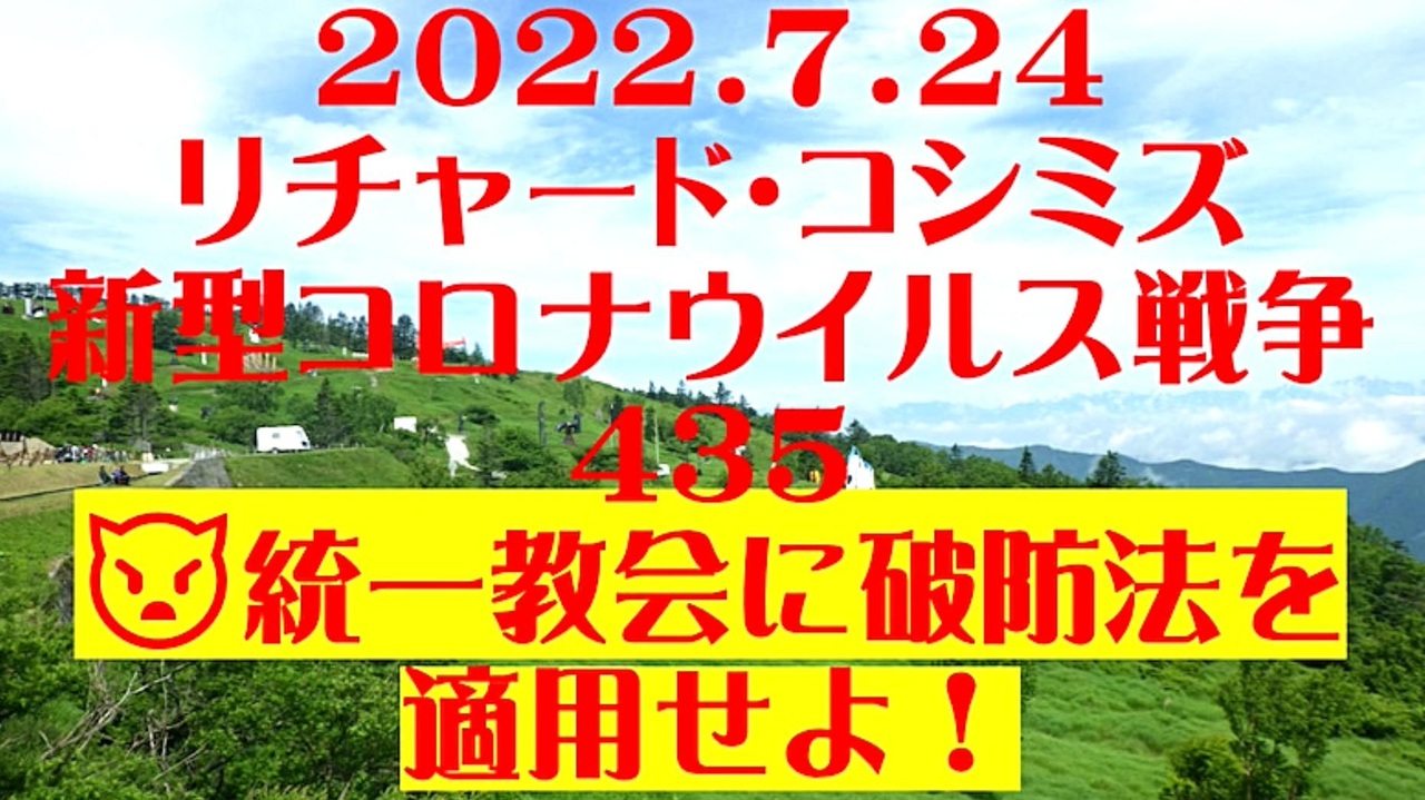 <span style="color: #cc4125;"><strong>「 テーマ:新型コロナウイルス戦争 435 」</strong></span><br><br><span style="color: #ff0000;"><strong>「 統一教会に『 破防法( 破壊活動防止法 )』を適用せよ! 」</strong></span><br><br><strong>*「フォロー」・「ニコニ広告」・「いいね!」・「情報拡散」等、ご協力下さい。 リチャード・コシミズ</strong><br><br><span style="color: #38761d;">◆</span><span style="color: #38761d;"><strong>リチャード・コシミズ 公式 ブログ</strong></span><br> <a href="https://ameblo.jp/richardneversurrender/" target="_blank" rel="noopener nofollow">https://ameblo.jp/richardneversurrender/</a><br><br><span style="color: #38761d;">◆</span><span style="color: #38761d;"><strong>リチャード・コシミズ 公式 ホームページ<br> </strong></span><a href="http://richardkoshimizu.boo.jp/" target="_blank" rel="noopener nofollow">http://richardkoshimizu.boo.jp/</a><br><br><span style="color: #38761d;">◆</span><span style="color: #38761d;"><strong>リチャード・コシミズ 講演会 公式 動画ギャラリー</strong></span><br> <a href="http://www.t-sskk.com/richardkoshimizu/video-gallery/index.html" target="_blank" rel="noopener nofollow">http://www.t-sskk.com/richardkoshimizu/video-gallery/index.html</a><br>