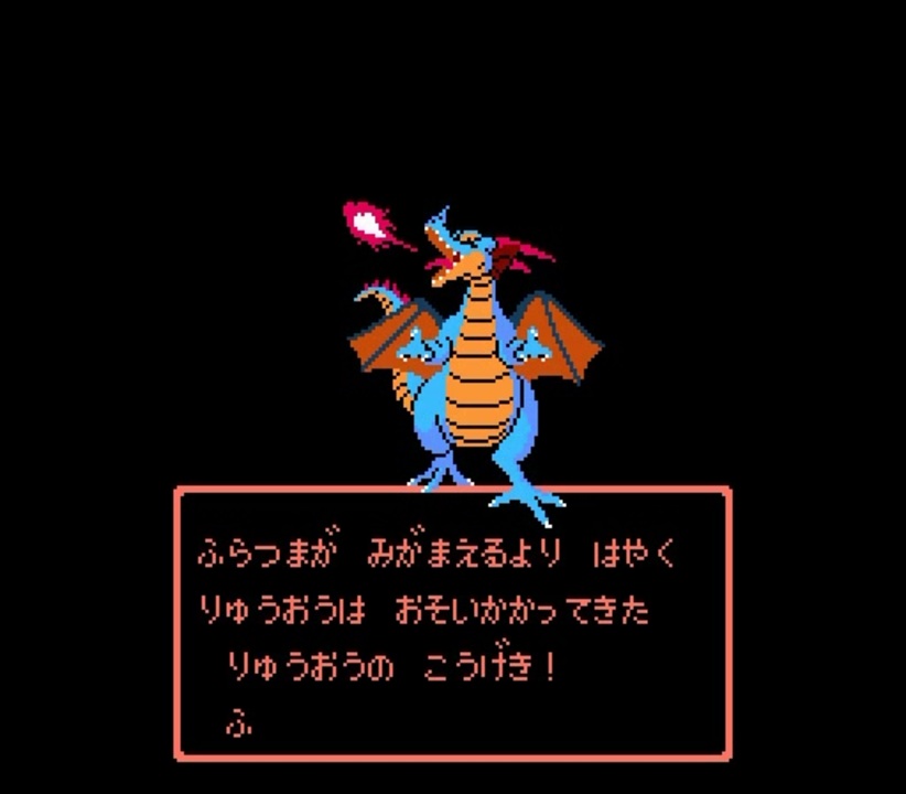 【TASさんの休日】FCドラクエ1_最少戦闘勝利数クリアしてみた(6回)<br><br>時間:24分19秒<br>追記回数:2150回<br>ソフト:ファミコン版 ドラゴンクエスト1<br><br>ファミコン版ドラゴンクエスト1を最少戦闘勝利数でクリアする動画を作ってみました。<br>理論上は、6回の勝利数でクリア出来ます。<br>ラリホーは必須です。逆に言えば、ラリホーさえ習得すればあとは無敵です。<br>また、ダンジョン攻略をするにおいて、明かりを灯した方が<br>視聴する側としては見やすいと思い、全てのダンジョンで必ずたいまつを使うようにしました。<br>また、ドラゴンクエスト1では、ローラ姫を救出するタイミングによって<br>若干異なる展開が拝見出来ます。<br>今回は、りゅうおう討伐後にローラ姫を救出する展開を確かめてみました。<br><br>■以下の縛りでプレイしています。<br>・最少戦闘回数でクリアします。<br>理論上は、計6回で全クリ出来ます。<br>メタルスライム4回、りゅうおう変身前1回、りゅうおう変身後1回、<br>・全てのダンジョンで、必ずたいまつを使用します。<br>・りゅうおう討伐後に、必ずローラ姫を救出します。<br><br>■タイムラップ<br>1:45 しのくびかざり入手<br>3:25 1回目の勝利戦闘 メタルスライム<br>3:50 2回目の勝利戦闘 メタルスライム<br>4:20 3回目の勝利戦闘 メタルスライム<br>4:30 4回目の勝利戦闘 メタルスライム<br>5:15 ロトのしるし入手後、沼地へ向けてダイブする<br>8:05 リムルダール着(鍵入手)<br>9:40 たいようのしるし入手<br>11:20 ぎんのたてごと入手<br>13:00 あまぐものつえ入手<br>14:20 にじのしずく入手<br>17:35 ロトのつるぎ入手<br>19:05 5回目の勝利戦闘 りゅうおう変身前<br>20:15 5回目の勝利戦闘 りゅうおう変身後<br><br>この動画で利用している株式会社スクウェア・エニックスを代表とする共同著作者が権利を所有する著作物及びスギヤマ工房有限会社が権利を所有する楽曲の転載・配布は禁止いたします。<br>© 1986 ARMOR PROJECT/BIRD STUDIO/SPIKE CHUNSOFT/SQUARE ENIX All Rights Reserved.<br>© SUGIYAMA KOBO<br><br><br>当動画はユーチューブでも上げています<br><a href="https://youtu.be/OKD_kOQHOrQ" target="_blank" rel="noopener nofollow">https://youtu.be/OKD_kOQHOrQ</a>