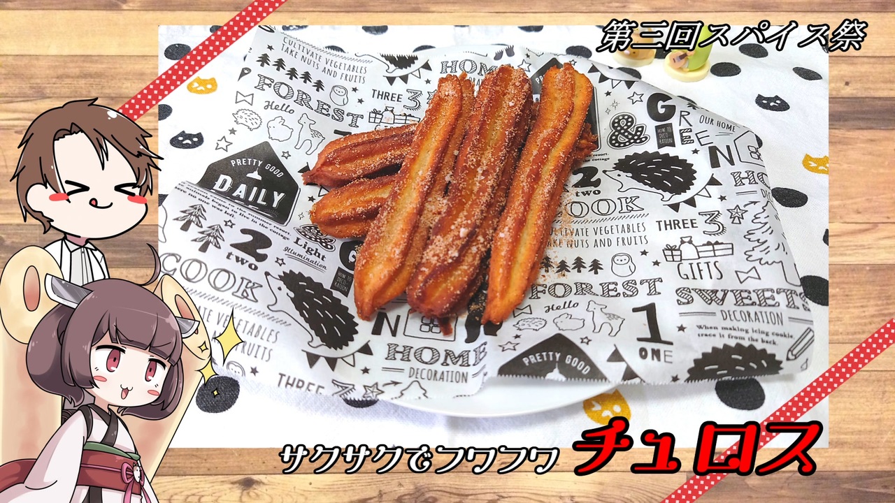 今回は<span style="color: #ff0000; font-size: 18px;"><strong>シャル</strong></span> <span style="color: #ff0000;"><strong>(</strong></span><span style="color: #ff0000;"><a href="https://www.nicovideo.jp/user/97437895" target="_blank" rel="noopener">user/97437895</a></span><span style="color: #ff0000;"><strong>) </strong></span><span style="color: #ff0000; font-size: 18px;"><strong>さん主催</strong></span>の<span style="color: #ff0000; font-size: 18px;"><strong>「第三回スパイス祭」</strong></span>の参加動画になります。<br>皆さん揚げ菓子といえば何でしょうか?ドーナッツ?揚げせんべい?<br>そんな色んな揚げ菓子の中で今回はテーマパークの定番揚げ菓子の「チュロス」です!!<br><span style="font-size: 10px;">それと少しガバりました・・・</span><br><span style="color: #ff0000;"><strong>※キッチンペーパーではなくクッキングシートですね!!コイツ編集でもガバってやがる・・・</strong></span><br><br><span style="color: #4a86e8; font-size: 16px;"><strong>Twitter(趣味混同)➡</strong></span><a href="https://twitter.com/atto0415" target="_blank" rel="noopener nofollow">https://twitter.com/atto0415</a><br><br><a target="_blank" href="https://qa.nicovideo.jp/faq/show/19424?site_domain=default" style="font-size: 13px;color: #657586; text-decoration: underline; line-height: 1.4">この動画は投稿者によって修正されました</a>