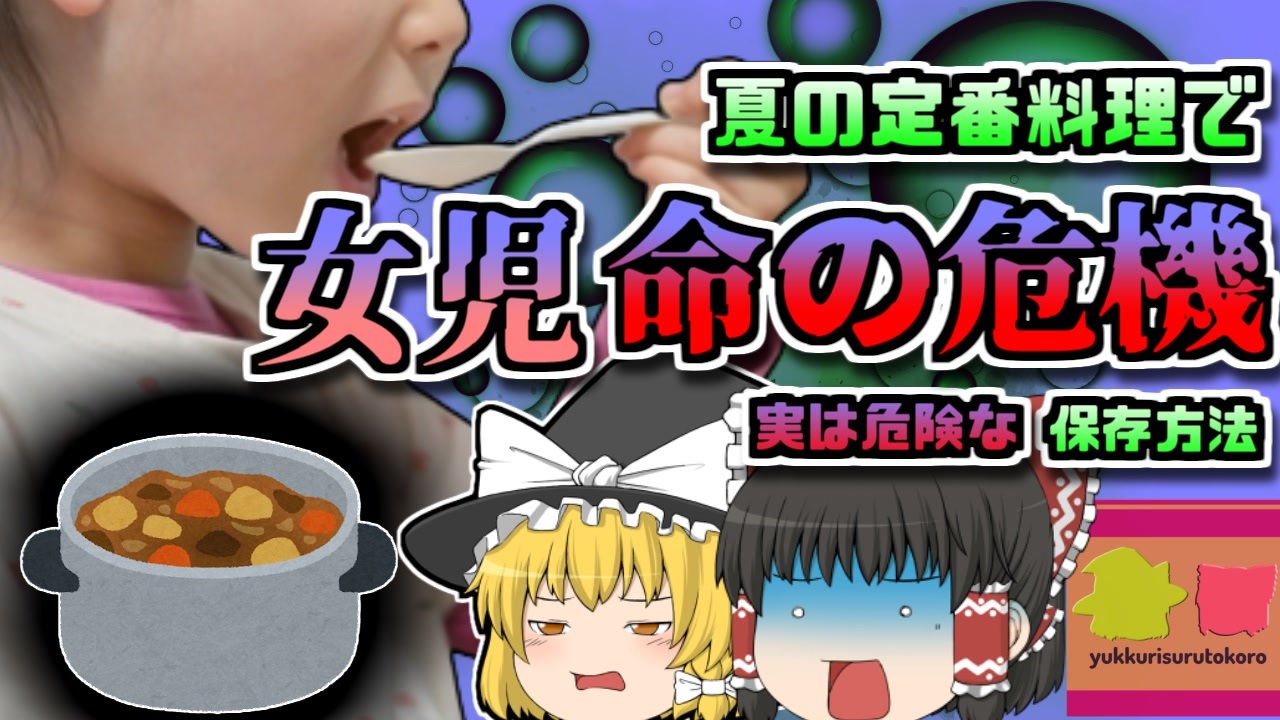 今回紹介するのは、以前からリクエストがありました、「夏場の食中毒」に関する事例です。<br>東京都に暮らす女性Aさんはこの日、休日だったため、二人の娘と自宅で昼食をとっていました。<br>この日のメニューは、前日に作り置きしておいた、「シーフードカレー」。<br>Aさんはこのカレーをしっかりとコンロで加熱し、お皿に盛って娘たちに出していました。<br>一晩寝かせたことによって、カレーはより一層美味しくなっており、娘たちは喜んでこのカレーを平らげました。<br>しかし、そのしばらく後、突然次女が嘔吐し始め、ぐったりとして床に倒れこんでしまいました。<br>続けて、長女とAさん自身にも、同じような症状が現れ、三人はその後救急車によって近くの病院に搬送されていきました。<br>Aさんと長女は比較的軽症でしたが、次女はまだ幼く、免疫力が低かったことから、一時命の危険がありましたが、その後無事退院。<br><br>彼女たちは何故、あのカレーでこのような恐ろしい症状に見舞われてしまったのでしょうか?<br><br><a href="#" class="seekTime" data-seekTime="00:00" onclick="seekNicoPlayer('#00:00'); return false;">#00:00</a> 冒頭挨拶<br><a href="#" class="seekTime" data-seekTime="00:26" onclick="seekNicoPlayer('#00:26'); return false;">#00:26</a> 視聴上の注意<br><a href="#" class="seekTime" data-seekTime="1:01" onclick="seekNicoPlayer('#1:01'); return false;">#1:01</a> 現地の説明<br><a href="#" class="seekTime" data-seekTime="2:00" onclick="seekNicoPlayer('#2:00'); return false;">#2:00</a> 主婦の「Aさん」<br><a href="#" class="seekTime" data-seekTime="2:29" onclick="seekNicoPlayer('#2:29'); return false;">#2:29</a> シーフードカレー<br><a href="#" class="seekTime" data-seekTime="3:06" onclick="seekNicoPlayer('#3:06'); return false;">#3:06</a> 異変<br><a href="#" class="seekTime" data-seekTime="4:33" onclick="seekNicoPlayer('#4:33'); return false;">#4:33</a> 病院へ<br><a href="#" class="seekTime" data-seekTime="5:36" onclick="seekNicoPlayer('#5:36'); return false;">#5:36</a> 『セレウス菌』<br><a href="#" class="seekTime" data-seekTime="7:30" onclick="seekNicoPlayer('#7:30'); return false;">#7:30</a> 熱に強い特徴<br><a href="#" class="seekTime" data-seekTime="9:04" onclick="seekNicoPlayer('#9:04'); return false;">#9:04</a> その後<br><a href="#" class="seekTime" data-seekTime="9:19" onclick="seekNicoPlayer('#9:19'); return false;">#9:19</a> 予防方法は<br><a href="#" class="seekTime" data-seekTime="11:59" onclick="seekNicoPlayer('#11:59'); return false;">#11:59</a> カレーの常温保存は危険<br><a href="#" class="seekTime" data-seekTime="13:10" onclick="seekNicoPlayer('#13:10'); return false;">#13:10</a> 夏は特に注意しよう<br><br>引用・出展・参考文献<br>東京都<br><a href="https://ishort.ink/WWFo" target="_blank" rel="noopener nofollow">https://ishort.ink/WWFo</a><br>厚生労働省<br><a href="https://ishort.ink/C3mb" target="_blank" rel="noopener nofollow">https://ishort.ink/C3mb</a><br>Wikipedia<br><br>東京都福祉保健局<br><br><a href="https://ishort.ink/uCUV" target="_blank" rel="noopener nofollow">https://ishort.ink/uCUV</a><br>Panasonic<br><a href="https://ishort.ink/NX8j" target="_blank" rel="noopener nofollow">https://ishort.ink/NX8j</a><br>名古屋大学栄養学部<br><a href="https://nutrition.nuas.ac.jp/tips/000037.html" target="_blank" rel="noopener nofollow">https://nutrition.nuas.ac.jp/tips/000037.html</a><br>その他視聴者提供資料など<br><br />※この動画は過去の事件を知り、現在でも同じことが発生する危険性を再認識、関与しないように促すための動画であり、視聴者を扇動、動揺を誘うためのコンテンツではありません。<br><br>ご要望にお応えして、メンバーシップの開設を行いました。<br>下記URLからも登録可能ですので、ご興味がある方は是非ご参加ください。<br><a href="https://www.youtube.com/channel/UCcT5a1J7XJW7CLYI2RKl4pw/join" target="_blank" rel="noopener nofollow">https://www.youtube.com/channel/UCcT5a1J7XJW7CLYI2RKl4pw/join</a><br><br><br>Twitter<br>→<a href="https://twitter.com/yukkurisurutoko" target="_blank" rel="noopener nofollow">https://twitter.com/yukkurisurutoko</a><br><br>取り急ぎ、簡易的にですがマイリストを作りました。<br>【ゆっくり解説】事故・事件関係紹介リスト <br><a href="https://www.nicovideo.jp/mylist/71034319" target="_blank" rel="noopener nofollow">https://www.nicovideo.jp/mylist/71034319</a><br>【ゆっくり解説】放射線系事故<br><a href="https://www.nicovideo.jp/mylist/71034368" target="_blank" rel="noopener nofollow">https://www.nicovideo.jp/mylist/71034368</a><br>【ゆっくり解説】鉄道系事故・事件関連<br><a href="https://www.nicovideo.jp/mylist/71034379" target="_blank" rel="noopener nofollow">https://www.nicovideo.jp/mylist/71034379</a>