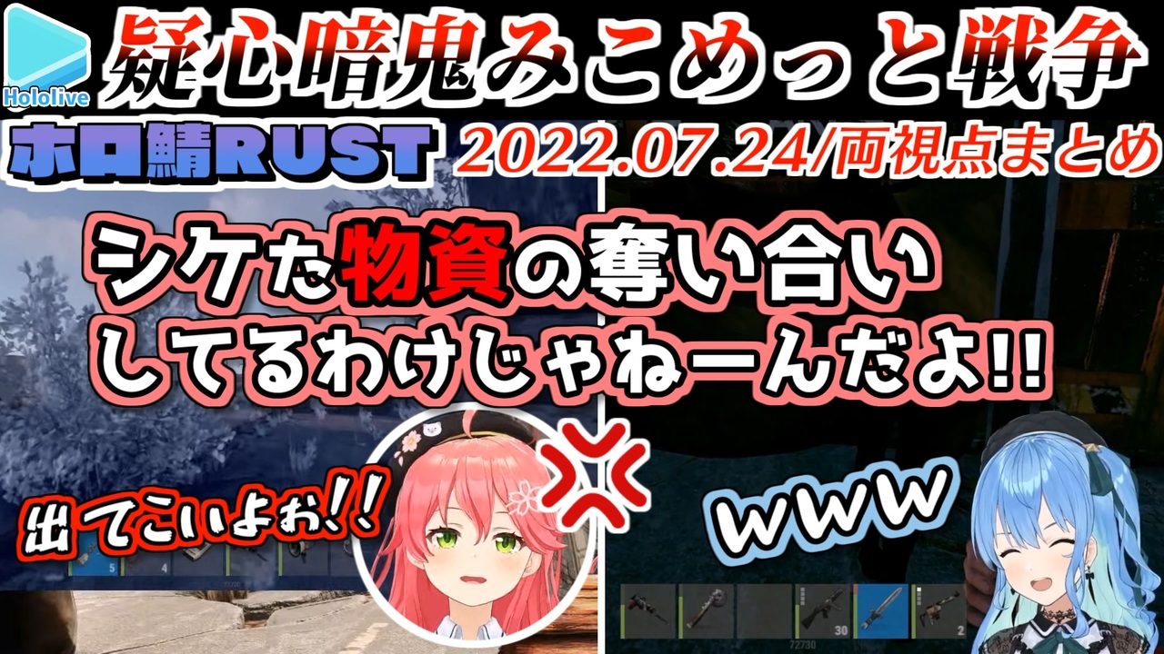 元動画様はこちら<br>【Rust】破壊のための準備活動【ホロライブ / 星街すいせい】<br><a href="https://youtu.be/-et3VxkrrRA" target="_blank" rel="noopener nofollow">https://youtu.be/-et3VxkrrRA</a><br><br>【 RUST 】弱肉はもう嫌だ―――にぇ!【ホロライブ/さくらみこ】<br><a href="https://youtu.be/jgy79Dzh9dc" target="_blank" rel="noopener nofollow">https://youtu.be/jgy79Dzh9dc</a><br><br>Miko Ch. さくらみこ <a href="https://t.co/FM8eBkuiOO" target="_blank" rel="noopener nofollow">https://t.co/FM8eBkuiOO</a><br>Suisei Channel <a href="https://t.co/VezQQPDAO0" target="_blank" rel="noopener nofollow">https://t.co/VezQQPDAO0</a><br /><span style="color: #b7b7b7; font-size: 10px;">ホロライブ切り抜き/なめたけ <a href="https://t.co/CBwJLnYR2c" target="_blank" rel="noopener nofollow">https://t.co/CBwJLnYR2c</a></span>